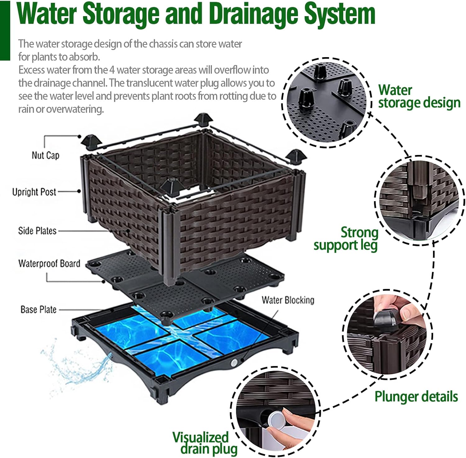 Garden Boxes Outdoor Raised Beds for Gardening Rectangular Planter Boxes Outdoor Planter Garden Box with Drain Outlet, Easy Assembly