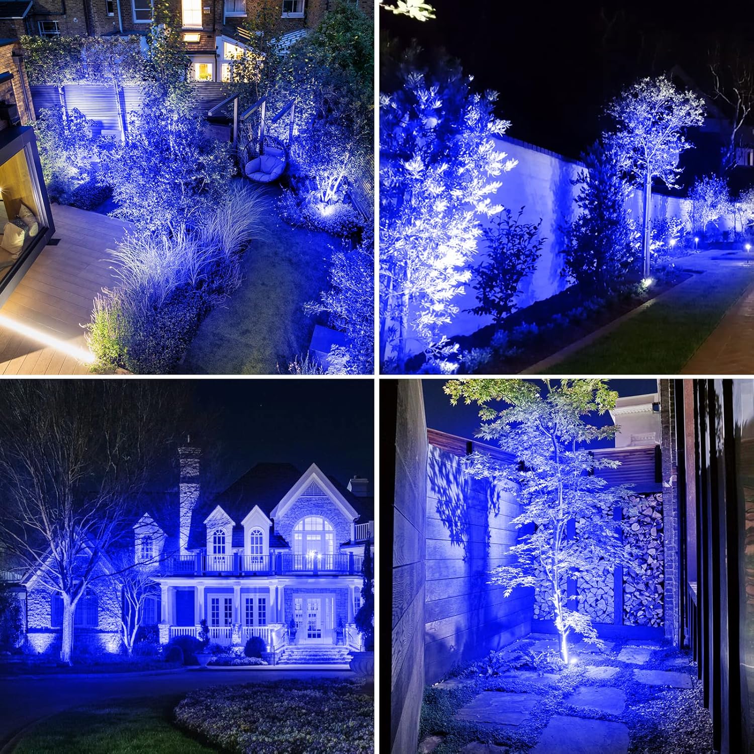 T-SUNUS 4 Pack Solar Landscape Spotlights - Blue, Waterproof IP65, 9.8ft Cable, 2000mAh Solar Panel, Auto On/Off for Garden, Driveway, Pathway, Pool Area