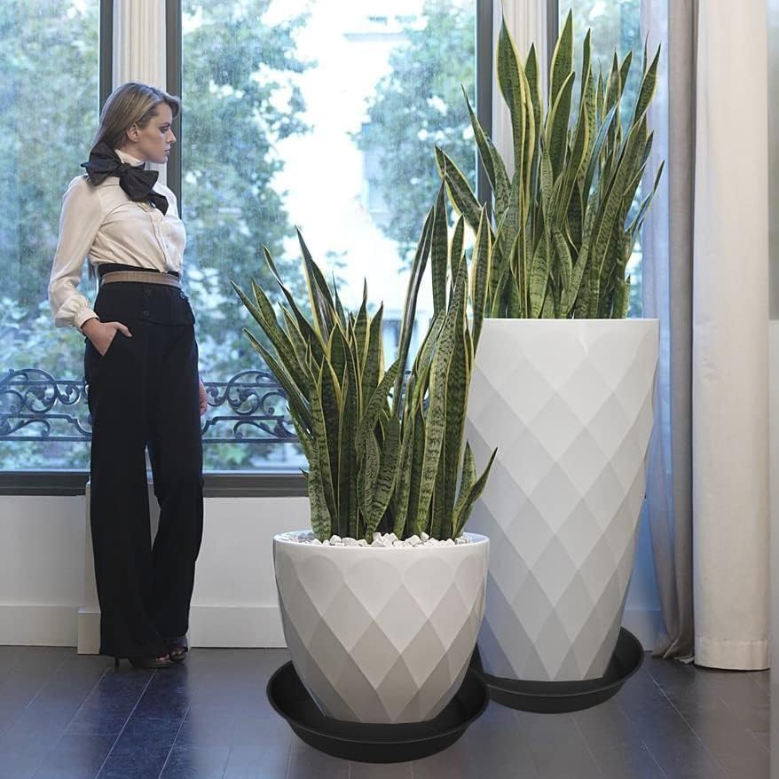 - 【PlANT SAUCER VLUE】Bleuhome plant saucer 26 inch, 3 packs black plant saucers, The tray size of each Flower pot trays is 26" at the top and 22.7" from bottom and it is 4.2" deep, suitable for planters with bottom diameter less than 26 inches.Plant Trays for Planter 21"/22"/23"/24"/25"/26"/27".