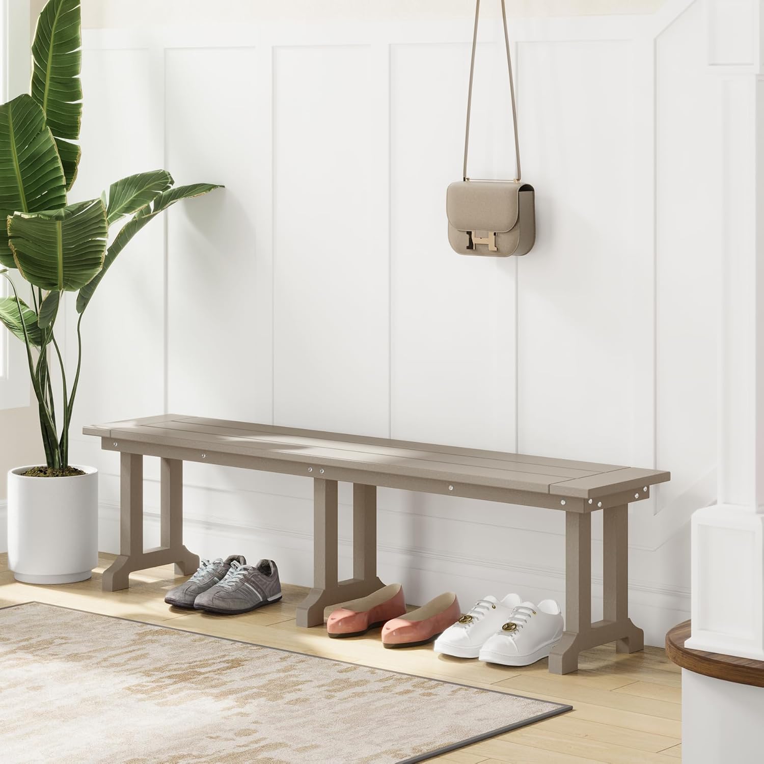 Outdoor Benches Weatherproof, Park Long Bench Poly Lumber Backless for Entryway Front Porch Garden Bench Seat for Patio, Weathered Wood