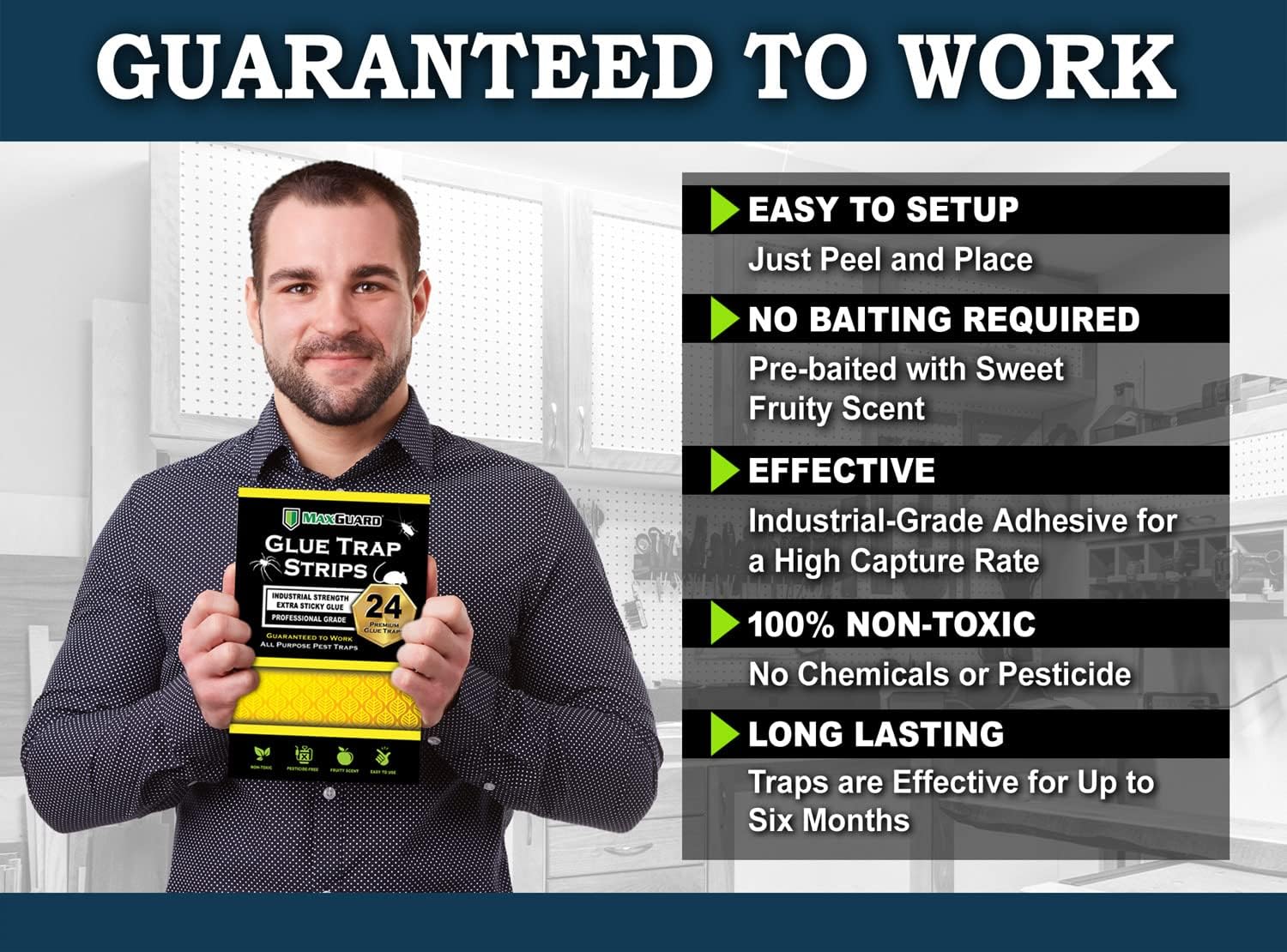 MaxGuard Glue Trap Strips (24 Traps) Non-Toxic Extra Sticky Glue Board Pre-Baited with Fruity Scent Attractant Trap & Kill Insects, Bugs, Spiders, Crickets, Scorpions, Cockroaches, Centipedes, Mice