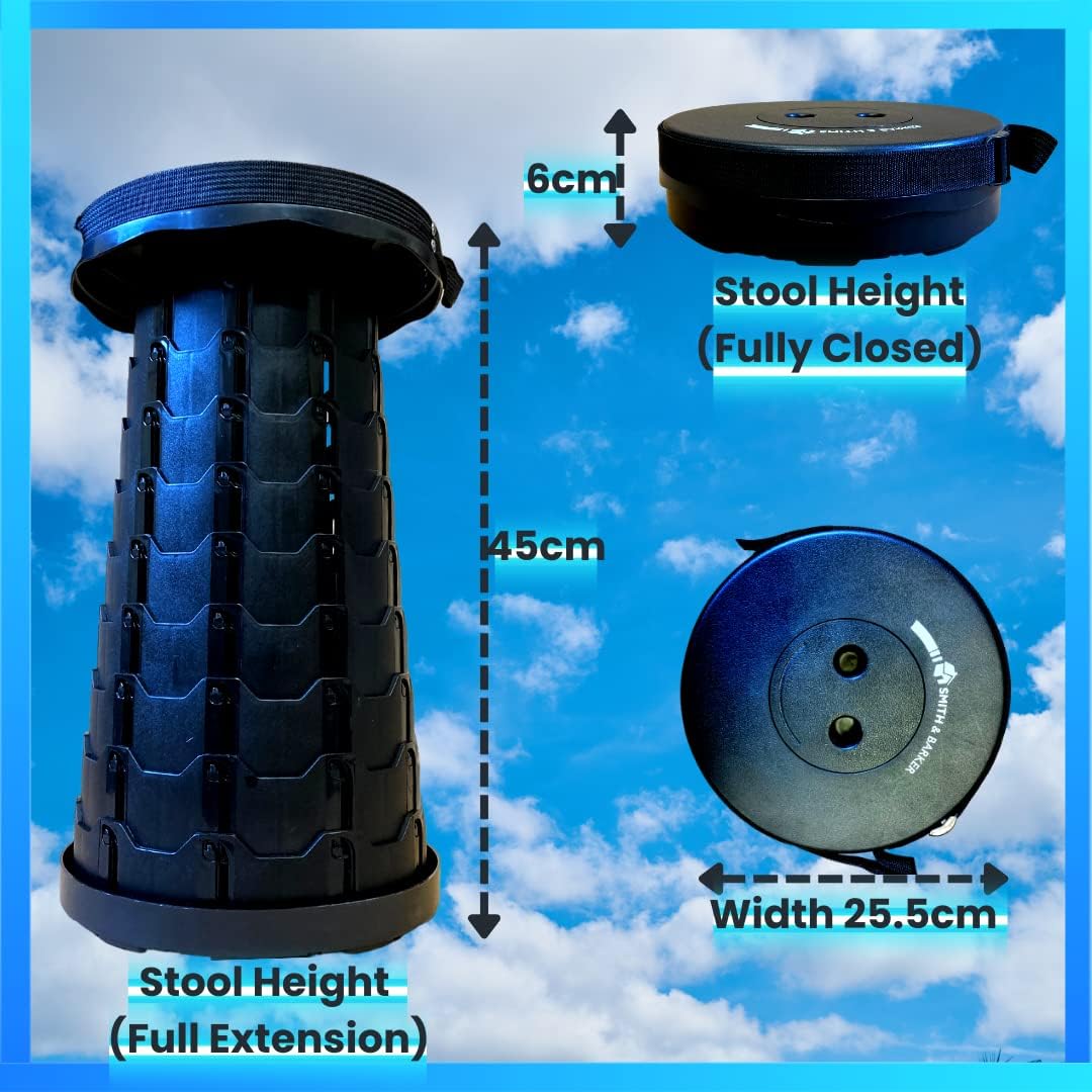 Smith & Barker Upgraded for 2025 Premium Telescopic Folding Stool for Adults and Children Outdoor Indoor Portable Collapsible Foldable Fishing Hiking Camping Festivals Seat (Black)