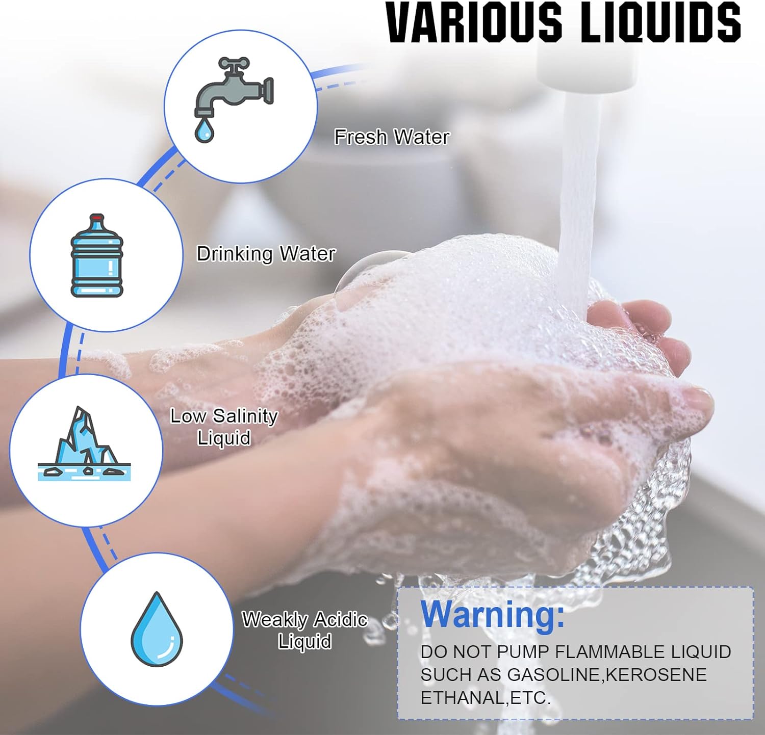 - Multipurpose: The nemesis of low water pressure. Support continuous operation for more than 1 hour. The water transfer pump is suitable for many fields, like RV, Marine, Boat, Irrigation, Sprinkler, Faucet and so on
