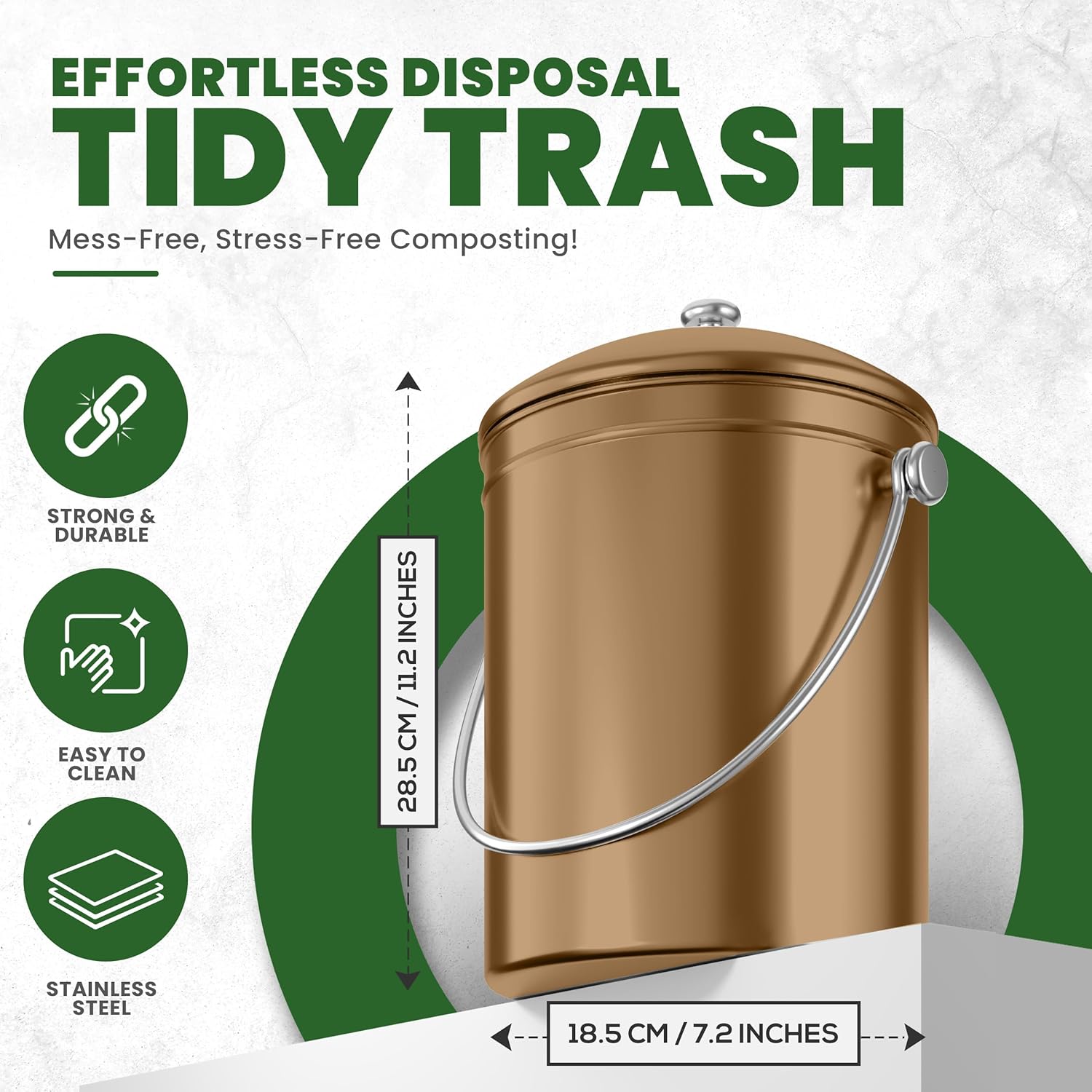 - Sturdy, stylish and sleek design complements any decor so that this kitchen compost bin can sit conveniently on your counter-top or wherever you need it