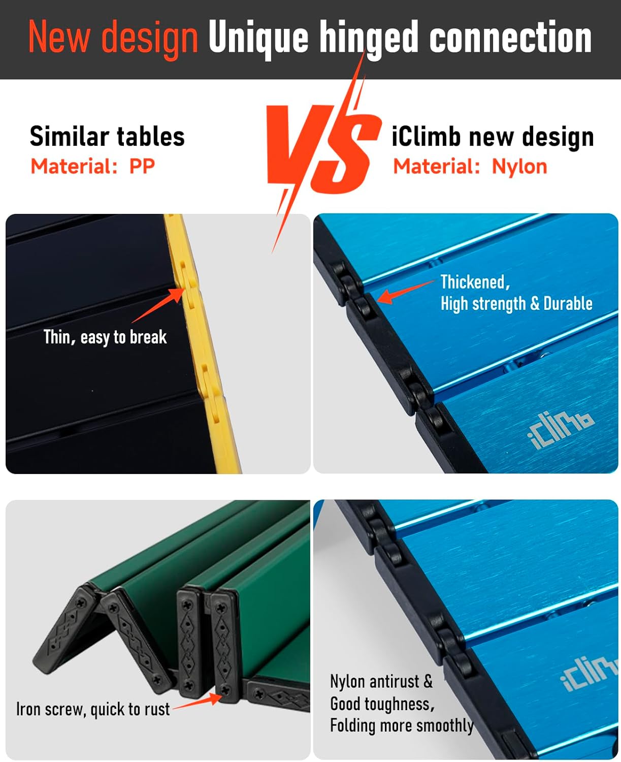 iClimb Ultralight Compact Mini Beach Picnic Folding Alu. Table with Carry Bag, Two Size (Blue - L)
