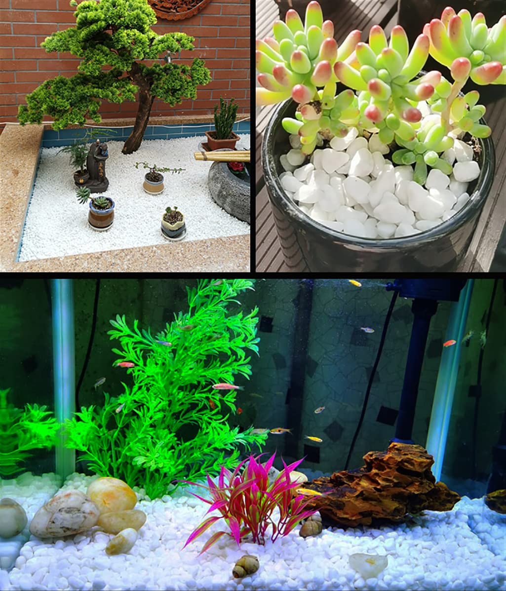 - DECORATIVE ROCKS - Smooth white decor stones can visually complement garden, lawn, potted plant or aquarium. Rocks and garden landscape are a match made in heaven, Adding a unique aesthetic to your landscape design.