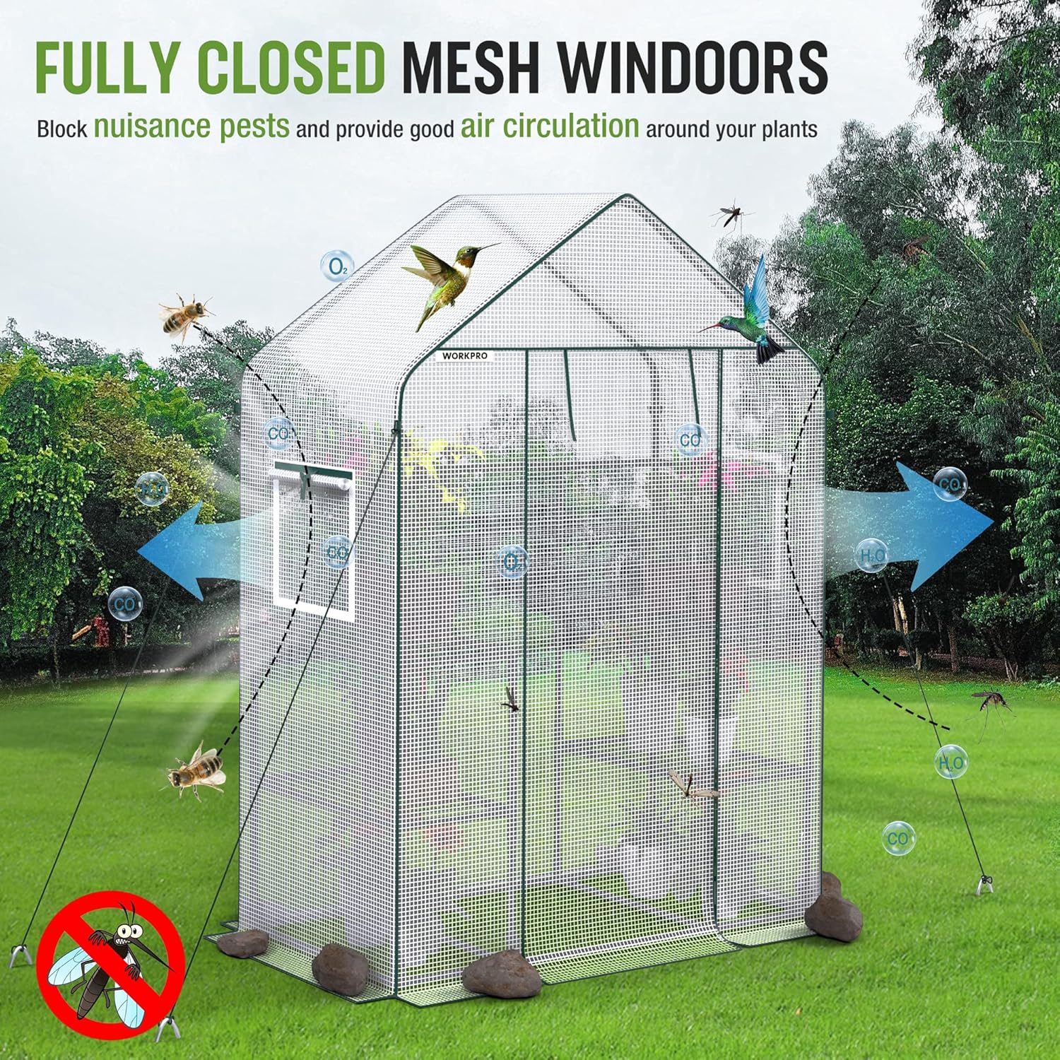 - Beautify Your Indoor Outdoor Landscape: The WORKPRO greenhouse garden kit has the versatility and effectiveness to work well. No need to worry about damaging your beloved plants due to unexpected cold snaps or heavy rain as our greenhouse kit will be battling with snow, frost, and heavy storms, so grow your mini greenhouse shelves with sprouting plants and blooming flowers in your backyard, balcony, or the basement.