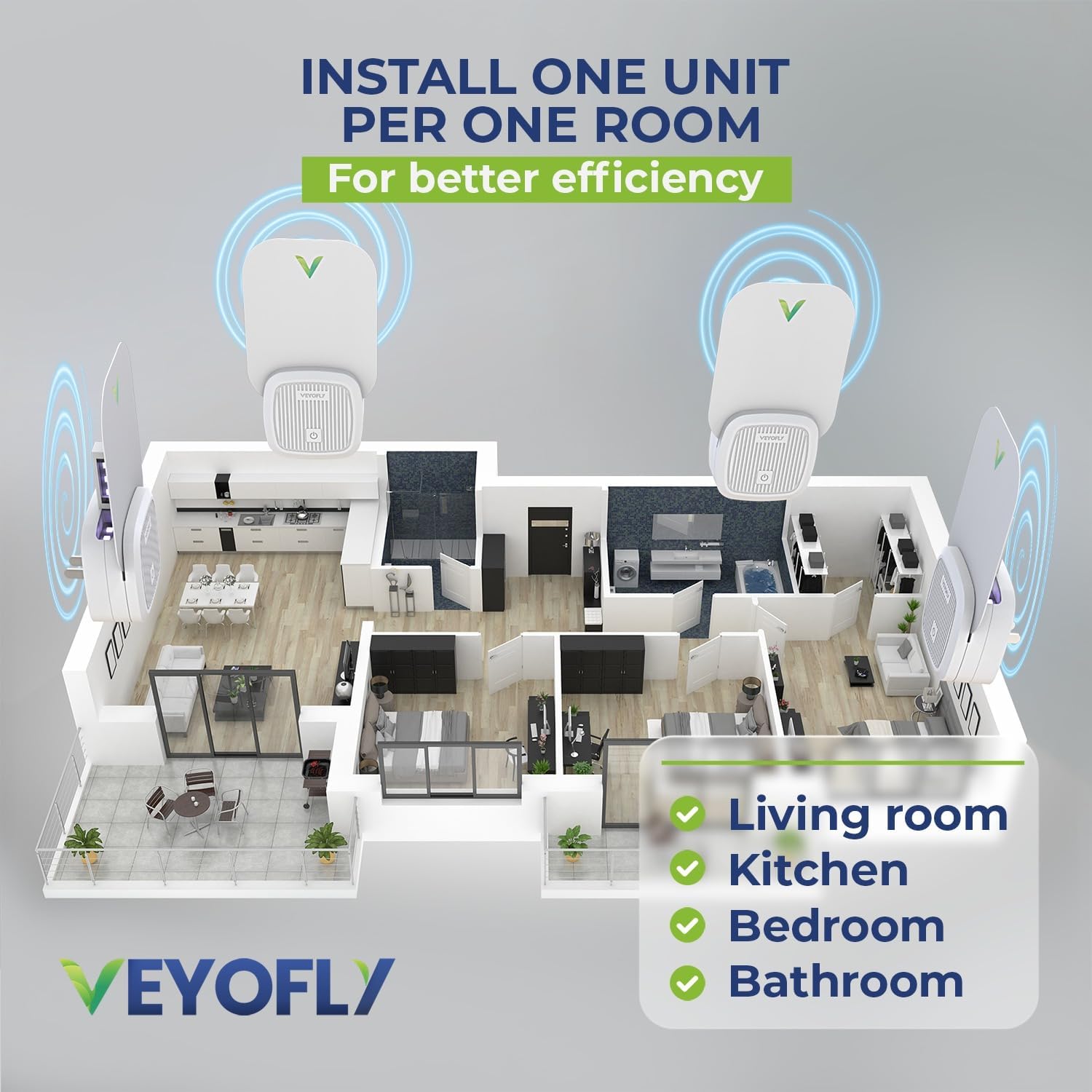 - UV LIGHT ATTRACTOR - AN IRRESISTIBLE TEMPTATION FOR FLIES -Featuring a ultraviolet LED lamp, VEYOFLY effectively lures and captures flies and insects, making it suitable for various environments, from homes to commercial and industrial settings, covering areas up to 400 square feet.