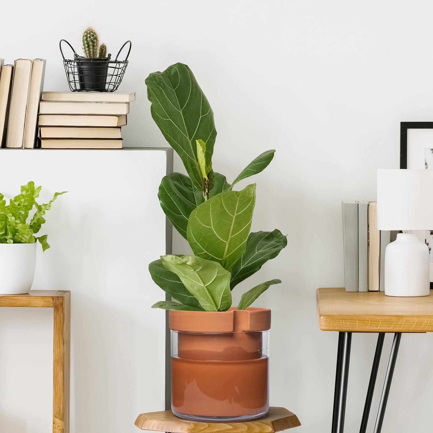 Phoenix Vine 10 Inch Self Watering Planter Pot, Terracotta Clay Pot with Glass Reservoir for Indoor Plants, Herbs, Flowers, Set of 1, 52-A-I-1