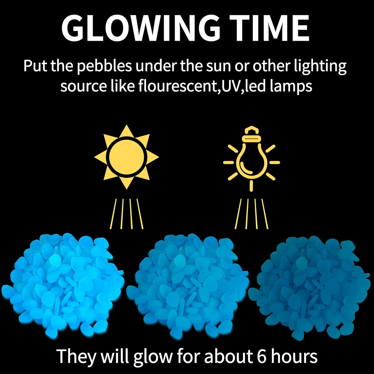 - 【ECO-FRIENDLY】- Made of high-quality resin, non-toxic and tasteless. By absorbing all kinds of natural light or artificial light, it realizes the self-luminous function in the dark state, and can be recycled infinitely.