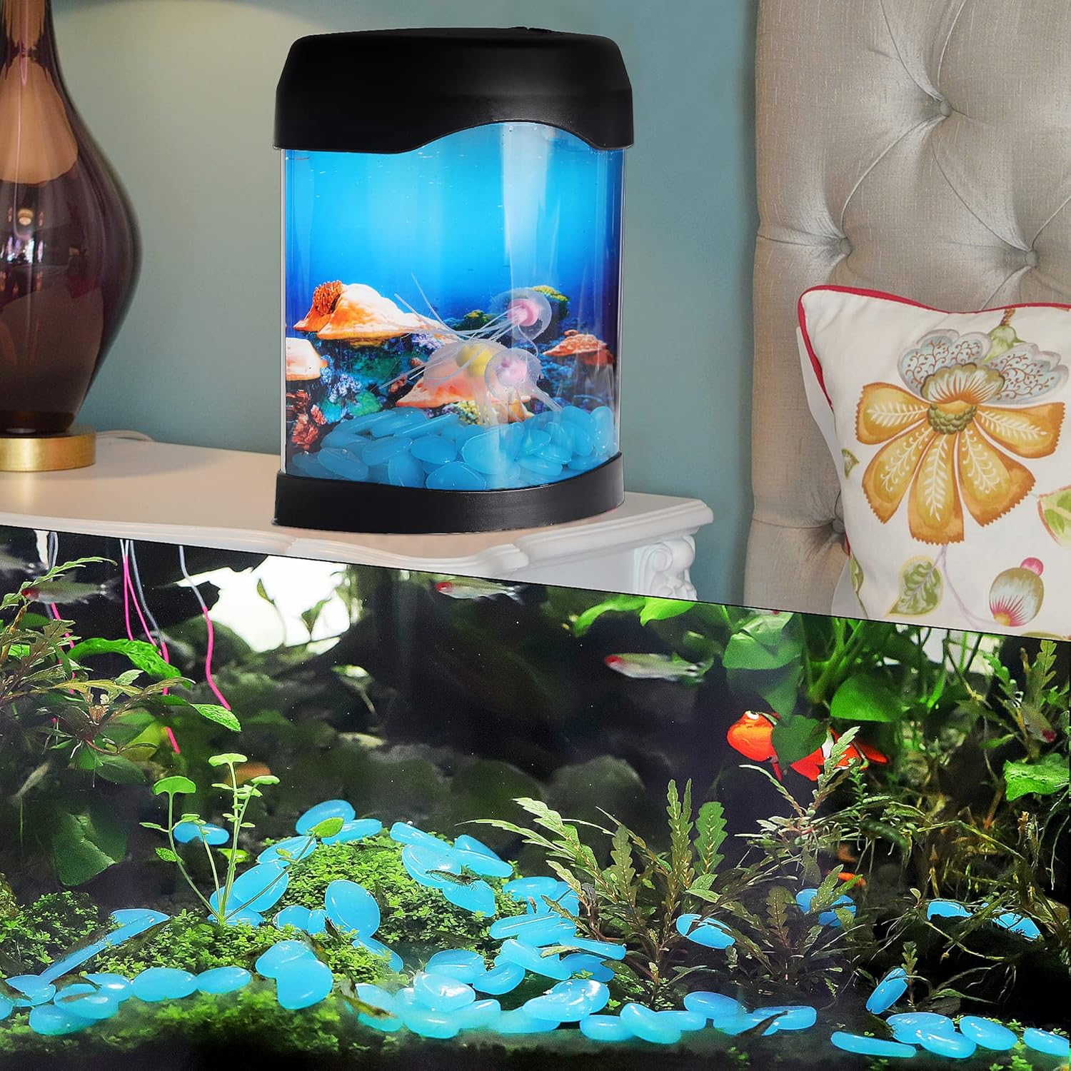 - 【ELEGANT BLUE】- Blue fluorescence will made your fish tanks or gardens in a graceful vibe. Show your unique taste to you guests.