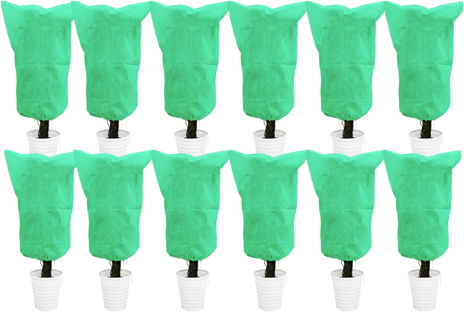 EAONE 12 Pack Plant Covers Freeze Protection, 24x32'' Winter Frosts Cloth for Outdoor Plants, Reusable Frost Blankets Drawstring Bags for Cold Freeze Sun Protection Bird Insect Prevention,Green