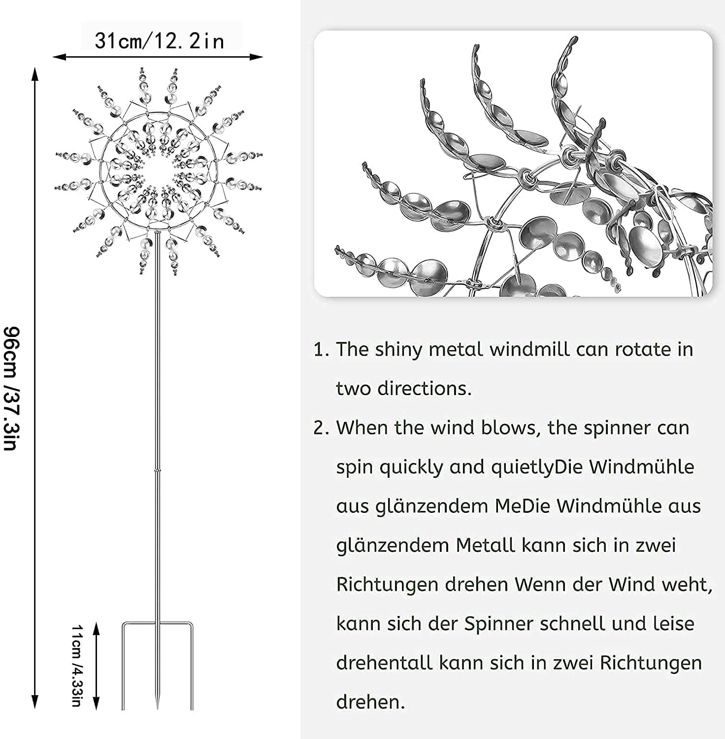 - 【HIGH QUALITY】This garden spinner is constructed with durable iron metal components and a long-lasting combo finish of paint and foil, bright metallic and reflective painting creates a visual sensation in the garden.