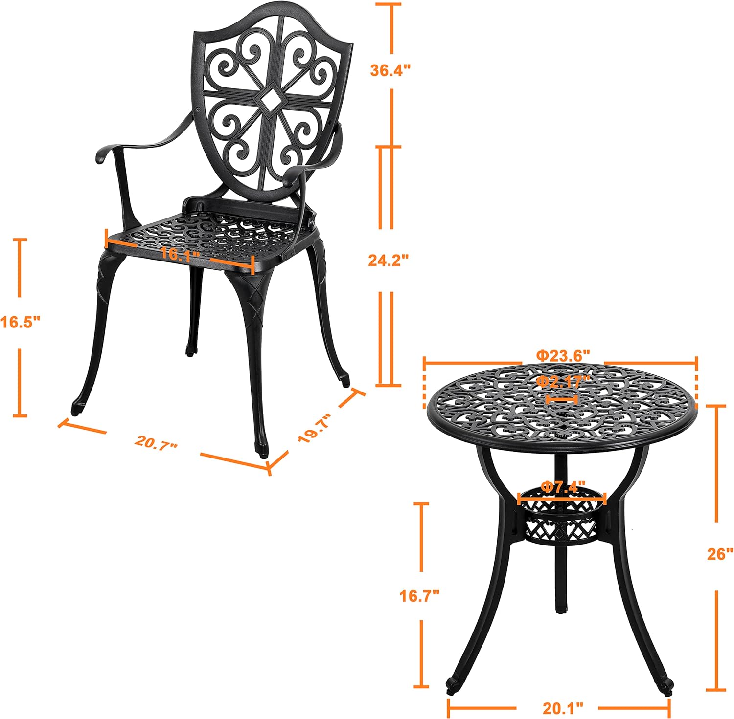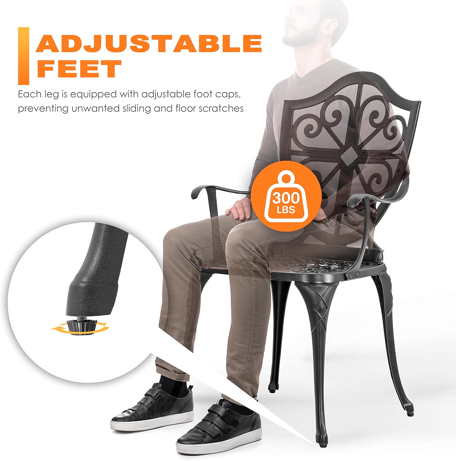 - Powder-Coated Frame: The outdoor bistro set frame made of high-quality cast aluminum with powder-coating protects the patio bistro set from getting rusty from all weather and ensures its durability for years to come