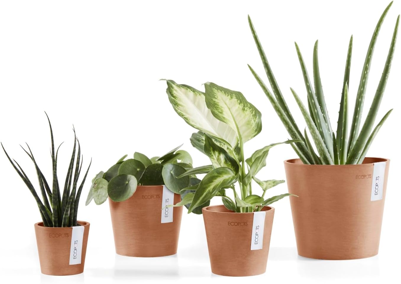 Ecopots Amsterdam Mini Durable Modern Round Recycled-Based Composite Flower Pot Planter, Terracotta Color, 7"