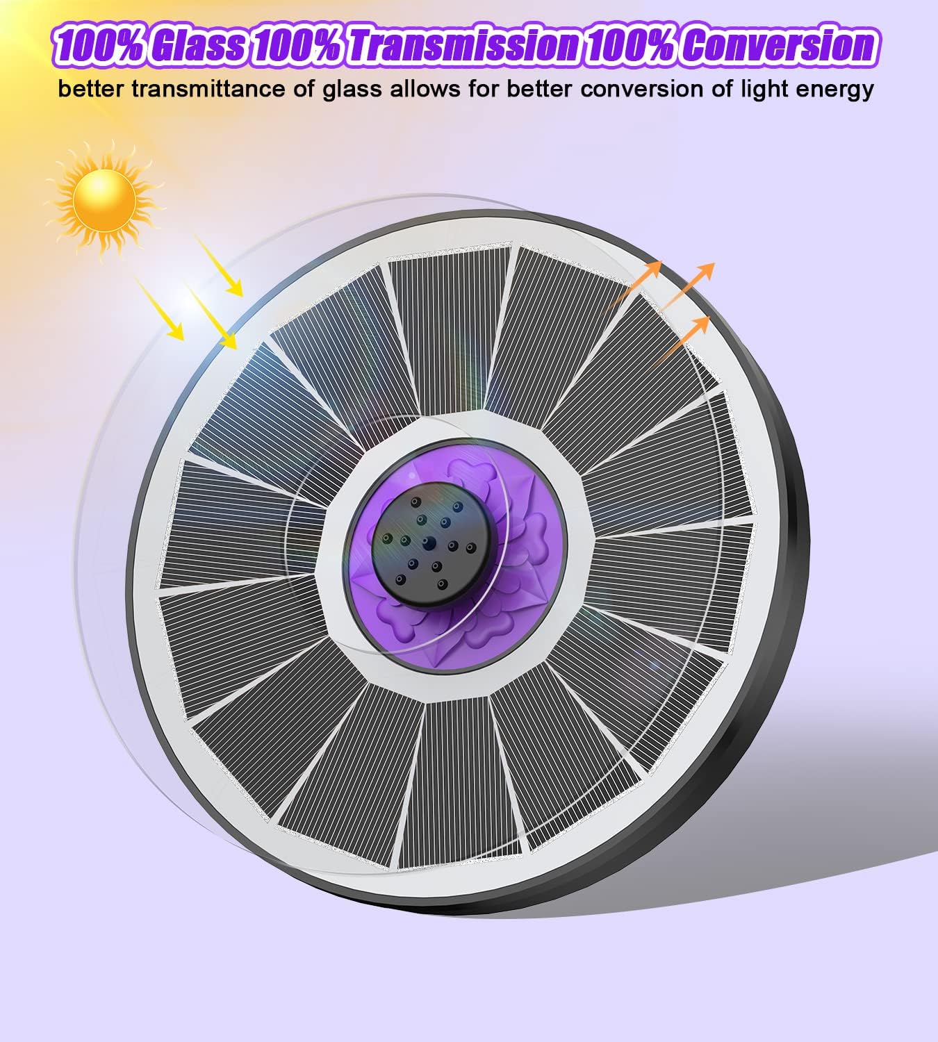 - High-end Glass Manufacturing Process: The solar water fountain uses new anti-corrosion glass materials to ensure that if it's for a long time in harsh environments, it will not oxidize and turn white. The glass surface gives the fountain a very high-end look and a good texture, and the purple pattern in the center looks like a flower bud. It will undoubtedly be the most beautiful fountain pump you have ever seen, adding a view and fun to your garden