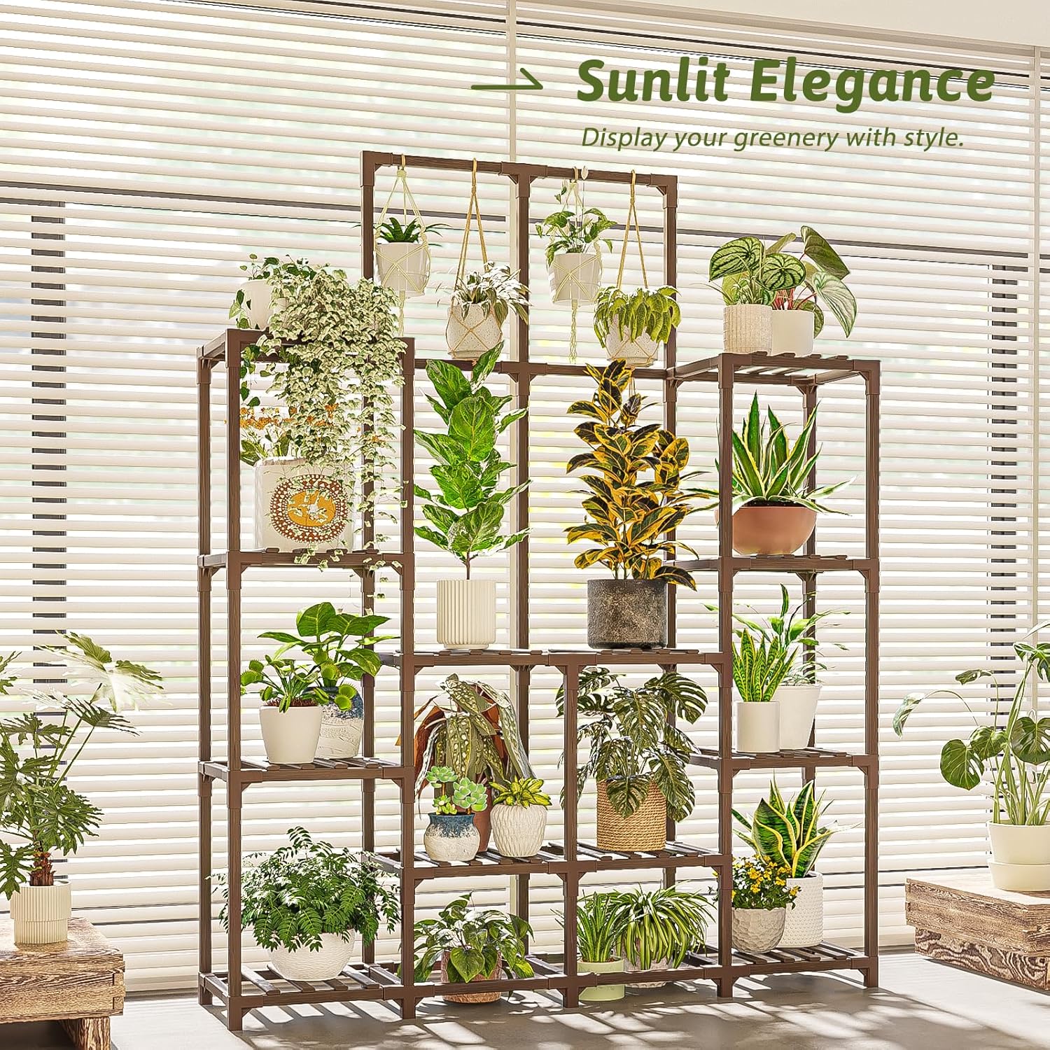 - Spacious 12-Tier Plant Shelf: This large plant stand holds up to 20 pots, offering ample space to display your indoor or outdoor plant collection. Perfect for optimizing small spaces in living rooms, balconies, patios, or gardens.
