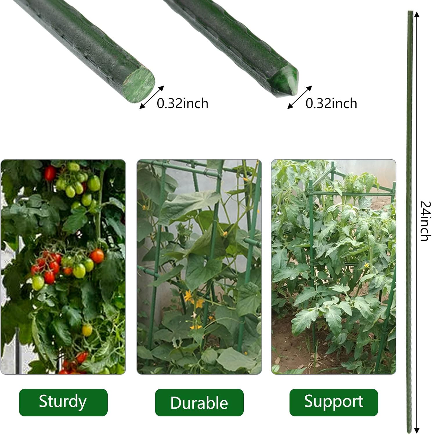 - Sturdy Garden Stakes: The garden stakes are made of sturdy hollow steel, and the surface is covered with a non-fading green plastic coating for weather and rust protection, have a longer life cycle than bamboo stakes and wood stakes, more handy and flexible than rebar and, can be reused.