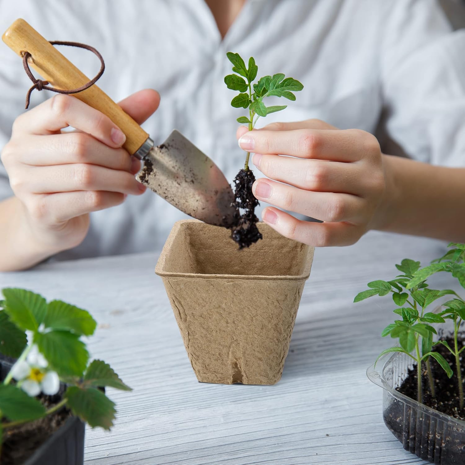 - Biodegradable material: our peat pots are made of environmentally friendly materials and when your plants take root, the shells can be degraded and become organic nutrients for the plants to absorb, they will eventually break down in the soil and be environmentally friendly