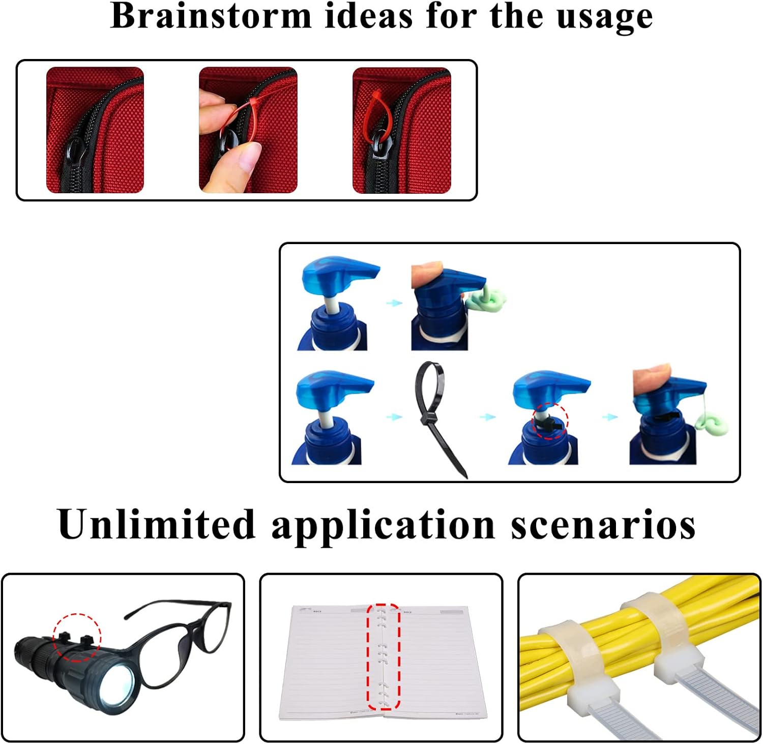 - 💡【Easy to Use】Simply pass the tip through the hole and pull it to the point you want where the crenelated curve inside completes the self-locking process.