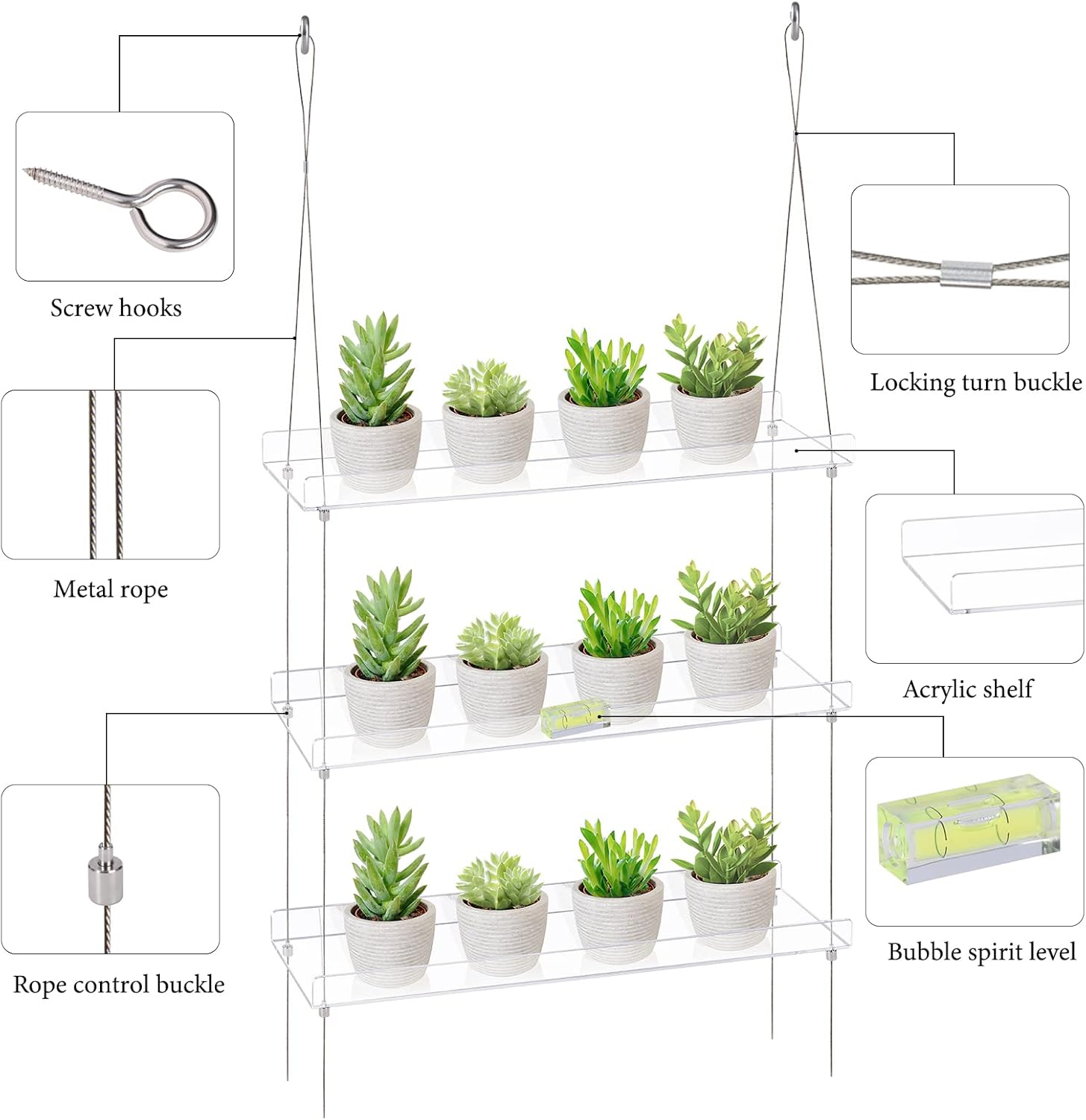 - NEW MODERN STYLE HOME DECOR: 3 Tier Clear Acrylic Hanging Window Plant Shelves. Different from boho style and rustic room decor, floating shelves feature Clear Acrylic, perfectly blend in with your modern apartment living room decor, chic bedroom, or bathroom decor.