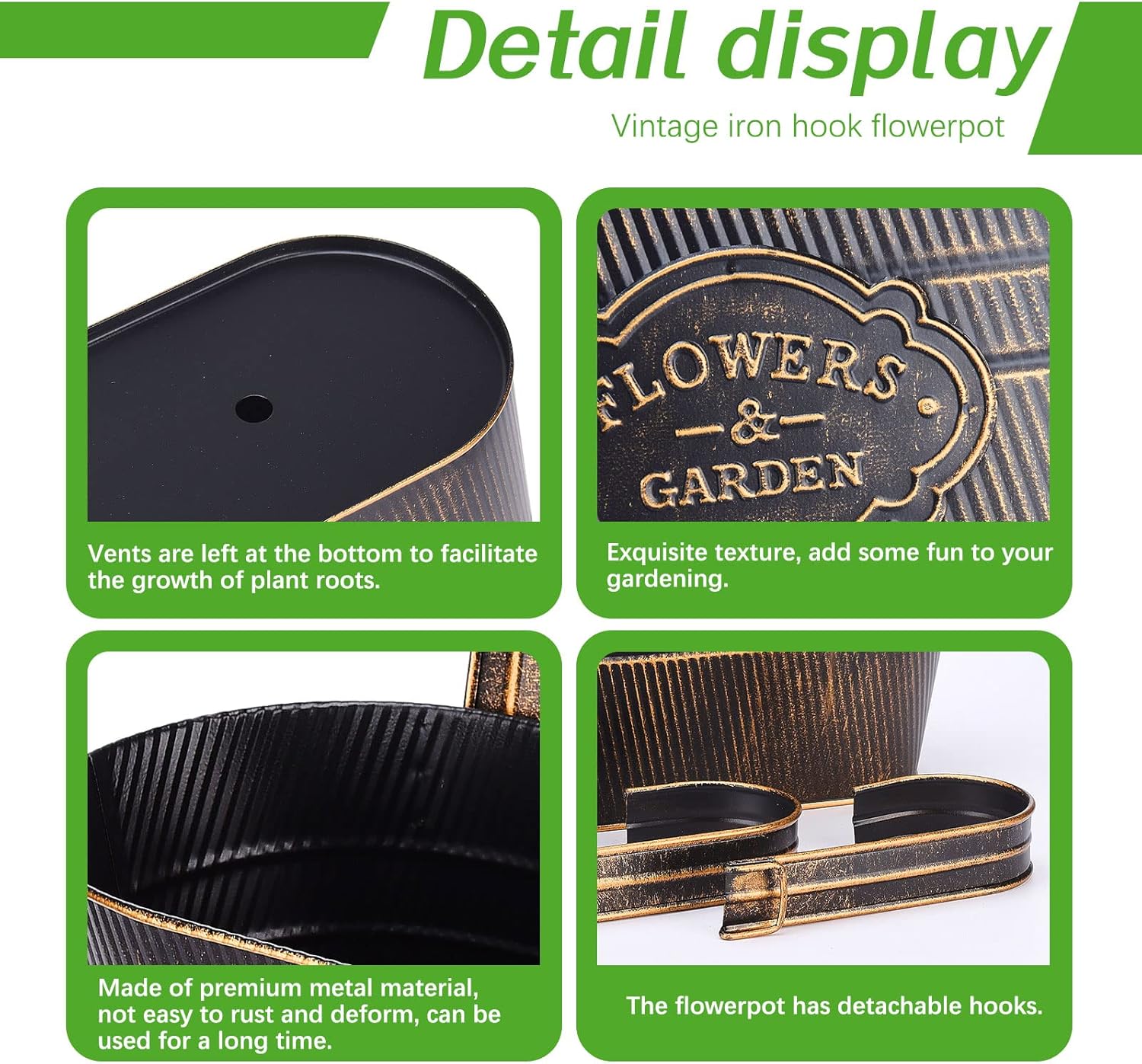 PerGar Vintage Metal Iron Wall Hanging Flower Pots, Rustic Planter Bucket Herb Flower Plant Holder with Detachable Hooks & Drainage Hole for Railing Fence Balcony Deck Garden Home Decoration, Set of 3