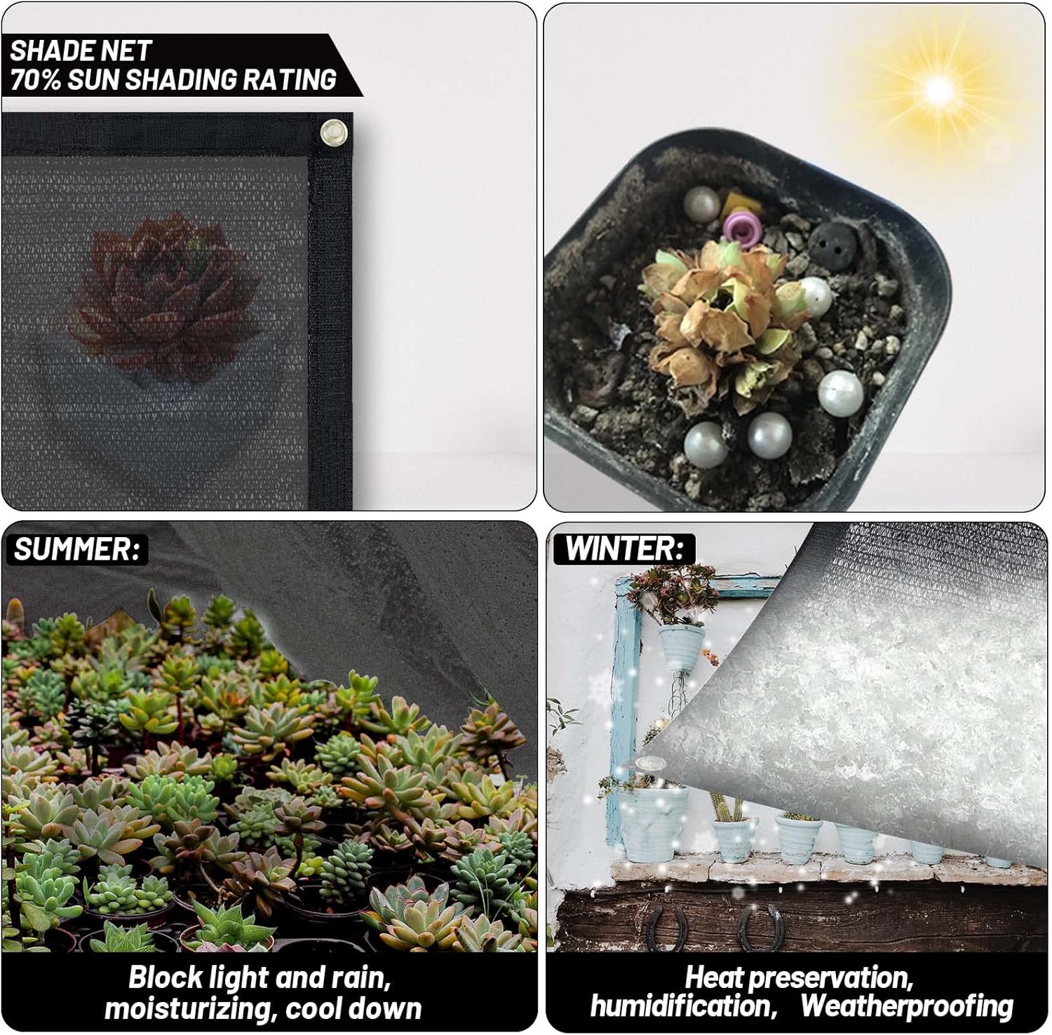 - 【70% Shading Rate】Made of 100% New High Density Polyethylene (HDPE) fabric material, has a shading rate up to 70% can avoiding direct sunlight while allowing free air circulation.