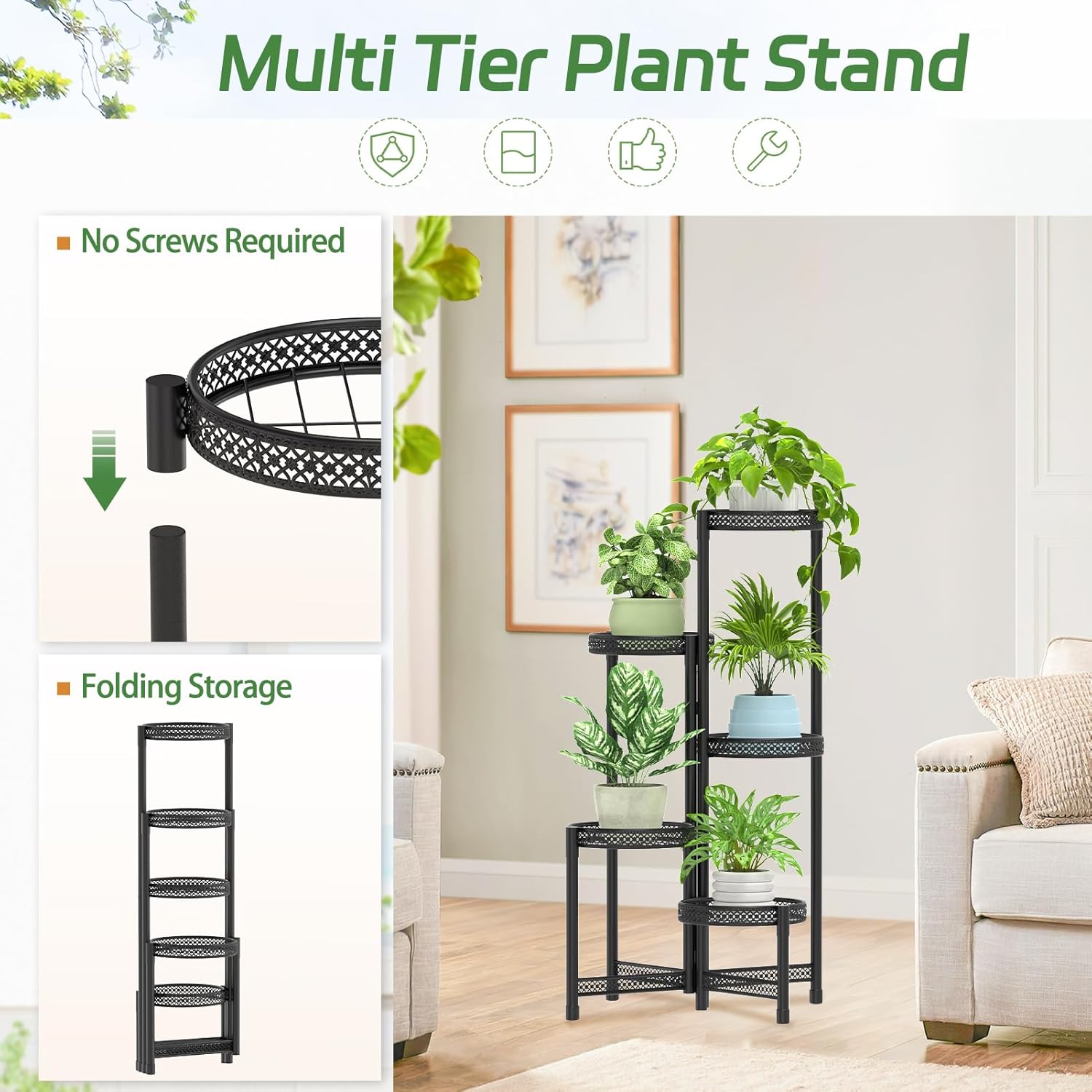 - Easy 5-Minute Assembly: No tools, no screws, no stress—just follow the clear manual to set up your plant stand indoor in minutes. The quick and simple process saves effort, letting you enjoy a sturdy and orderly display right away