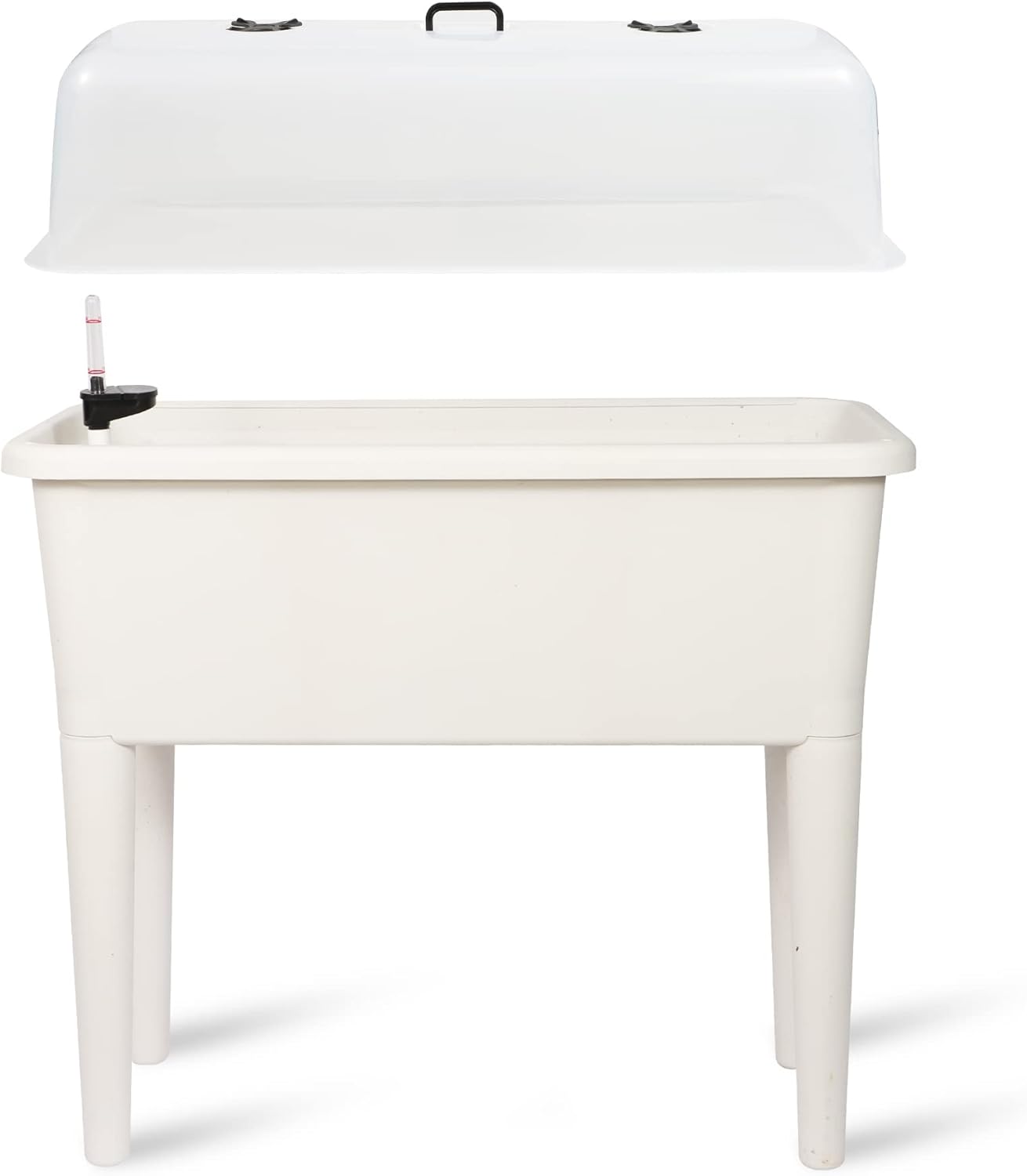 Dexceder 13.2 Gallon Self Watering Raised Garden Bed with Ventilation Transparent Lid Greenhouse, Deepen Vegetable Flower Box Planter Pot with Removeble Legs & Water Level Indicator (White)