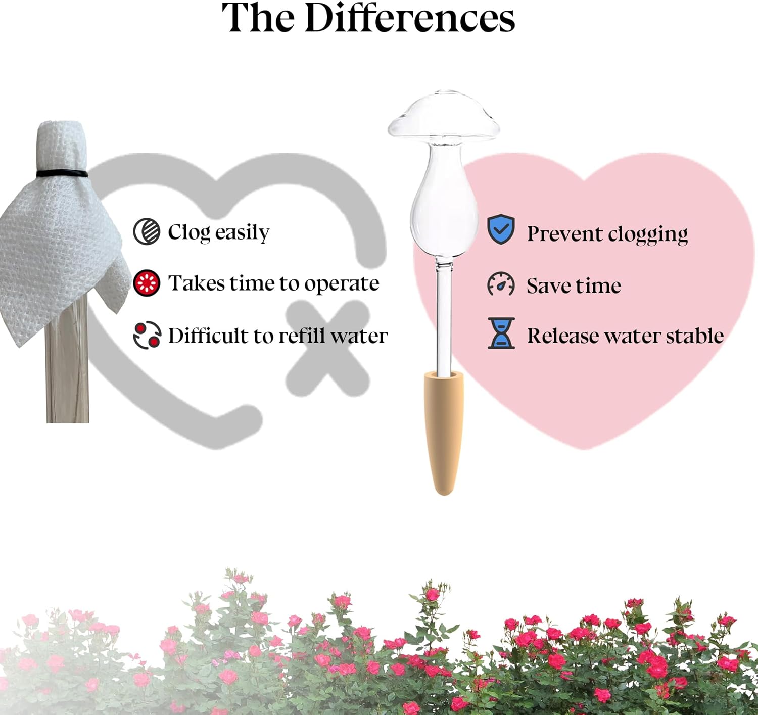 - 【No Clogging, No Need to Wrap The Spout with A Cloth Any More】Since It works through osmosis, the small terracotta watering spikes will prevent dirts from getting into the globes, you don't need to wrap the spout with a cloth any more