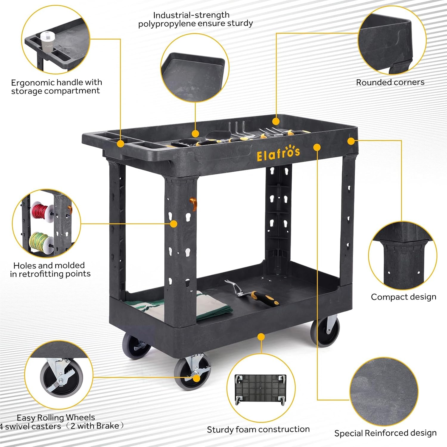 ELAFROS 2024 Model Heavy Duty Utility Cart 34x17 Inch, 2 Tier Rolling Service Cart with Deep Shelves, 550 lbs Capacity – Random Color Black or Gray, Clearance Work Cart