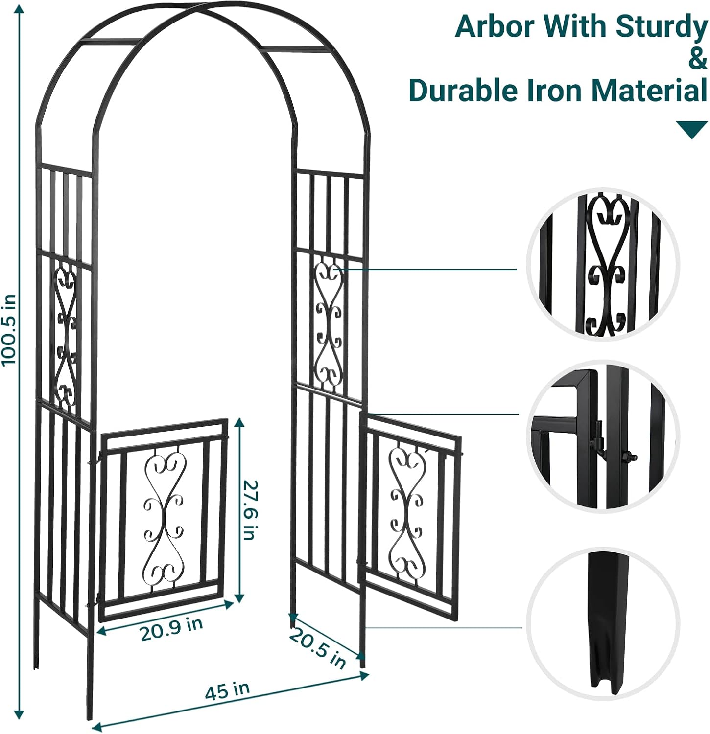 Heavy-Duty Arch with Gate, Iron Arbor Trellis Arbor Archway for Climbing Plants Roses Vines Support Rack, Outdoor Lawn Backyard Patio Wedding Party Ceremony Decoration