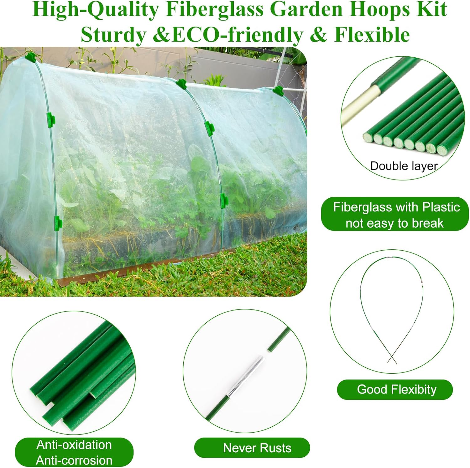 - Premium & Rust-Free Material : Our Garden plant stakes made of Sturdy and heavy duty fiberglass, double layer, bendable and has good flexibility, strong resistance, never rust and anti-oxidation, lasting long garden poles . Hoop House Greenhouse kit can help extend your plants growing season.