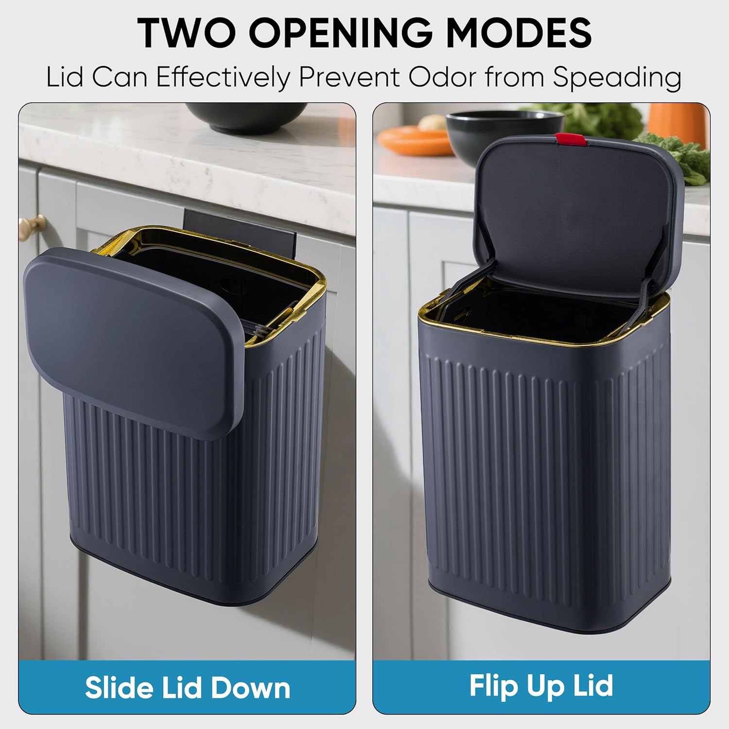 - [Kitchen Trash Bin with 2 Ways Slide Lid] The kitchen countertop trash can is equipped with a 2 ways sliding lid, you could lift the lid directly or slide the lid at the opposite direction thanks to its creative design.