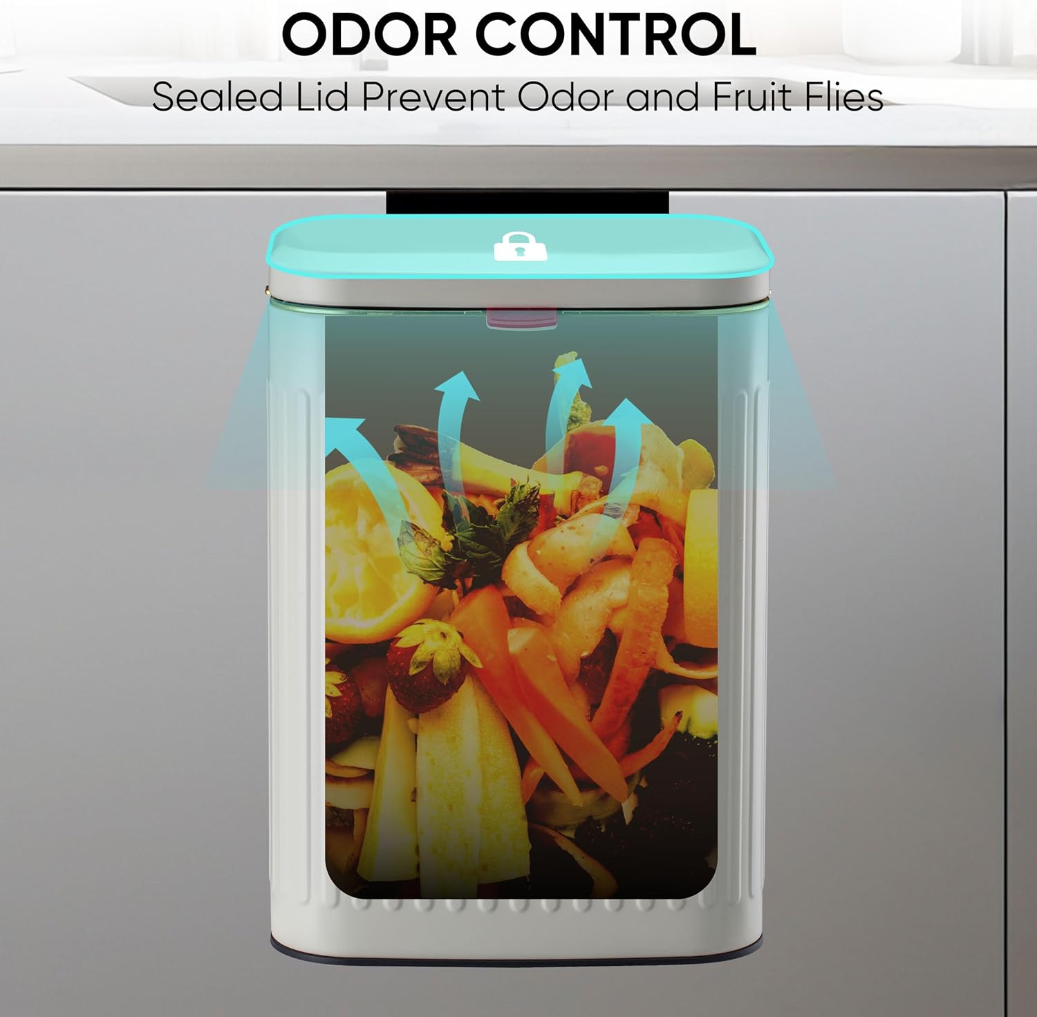 - [Waste Basket with Fully Sealed Base and Lid] The compost can's base is fully sealed, there is no trash with leak from the base.After covered the lid, the trash odor will not enter into the air.Keep the odor inside in the trash bin effectively.