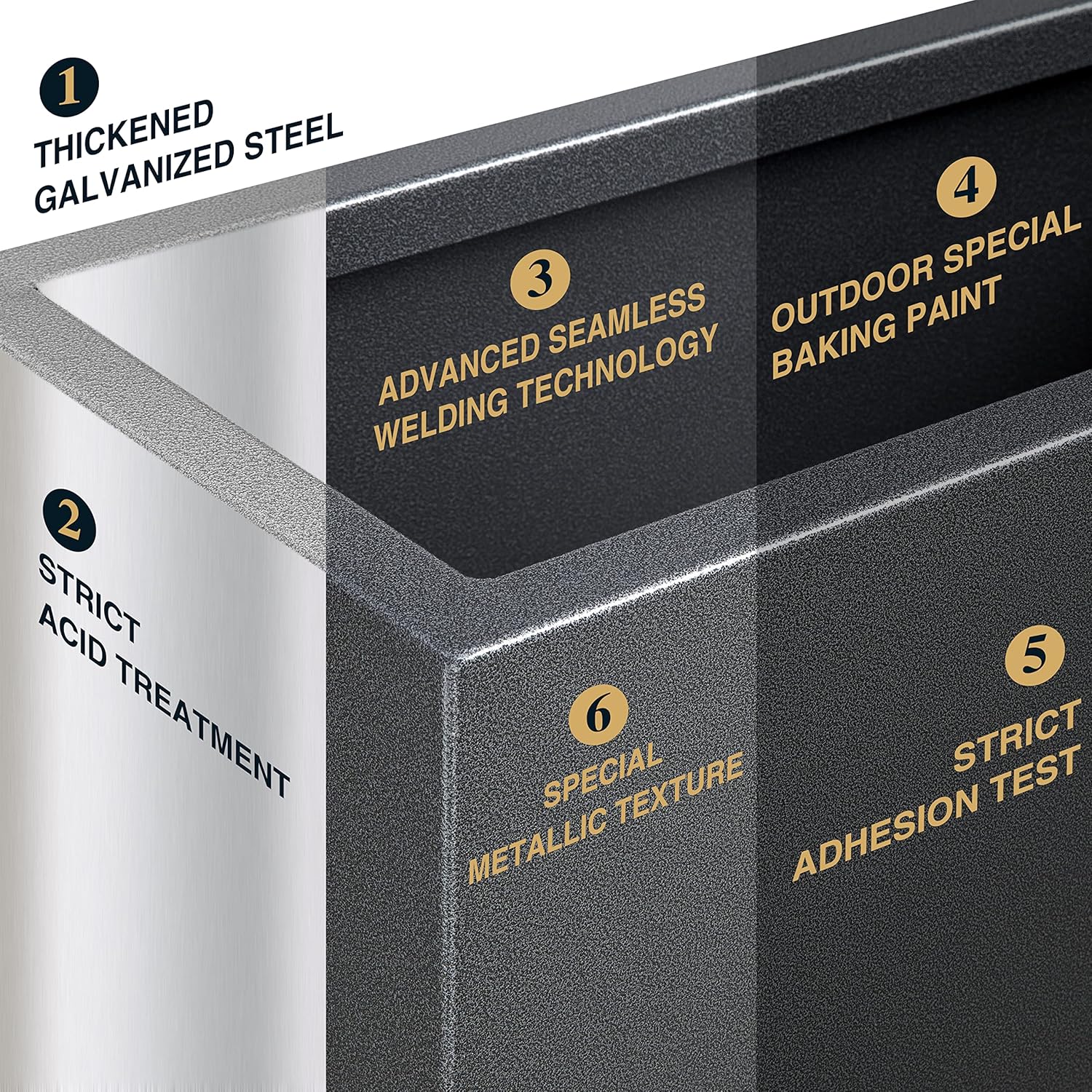 - METAL PLANT BOX: This planter box is made from a fully seam welded thick galvanized steel, and adopts outdoor special baking paint, giving the surface a premium metallic color and special texture through advanced powder injection process.