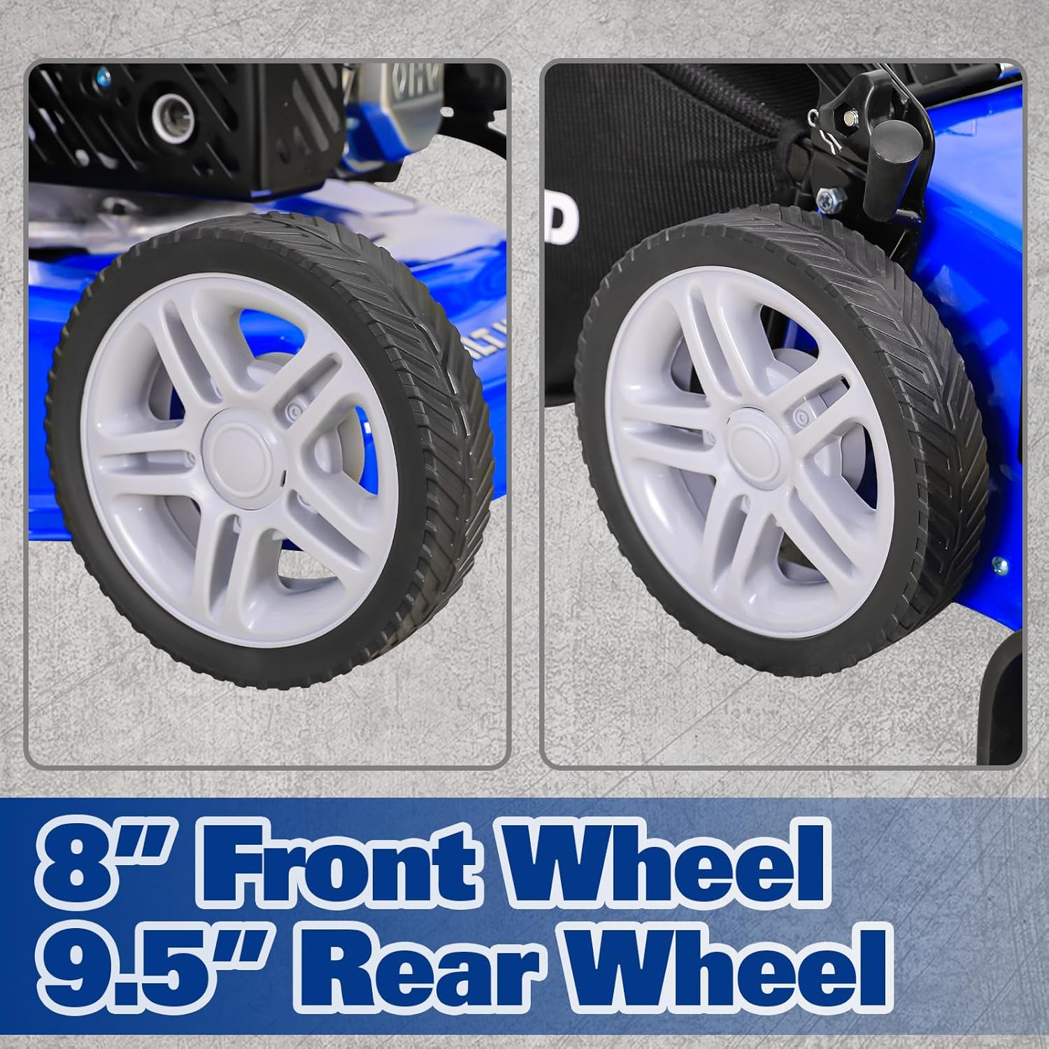 - Comfortable Mowing Experience - Equipped with 9.5" rear and 8" front double ball-bearing wheels for smooth and effortless movement, as well as a comfortable foam-wrapped angled grip that eliminates hand fatigue, making your lawn maintenance a breeze.
