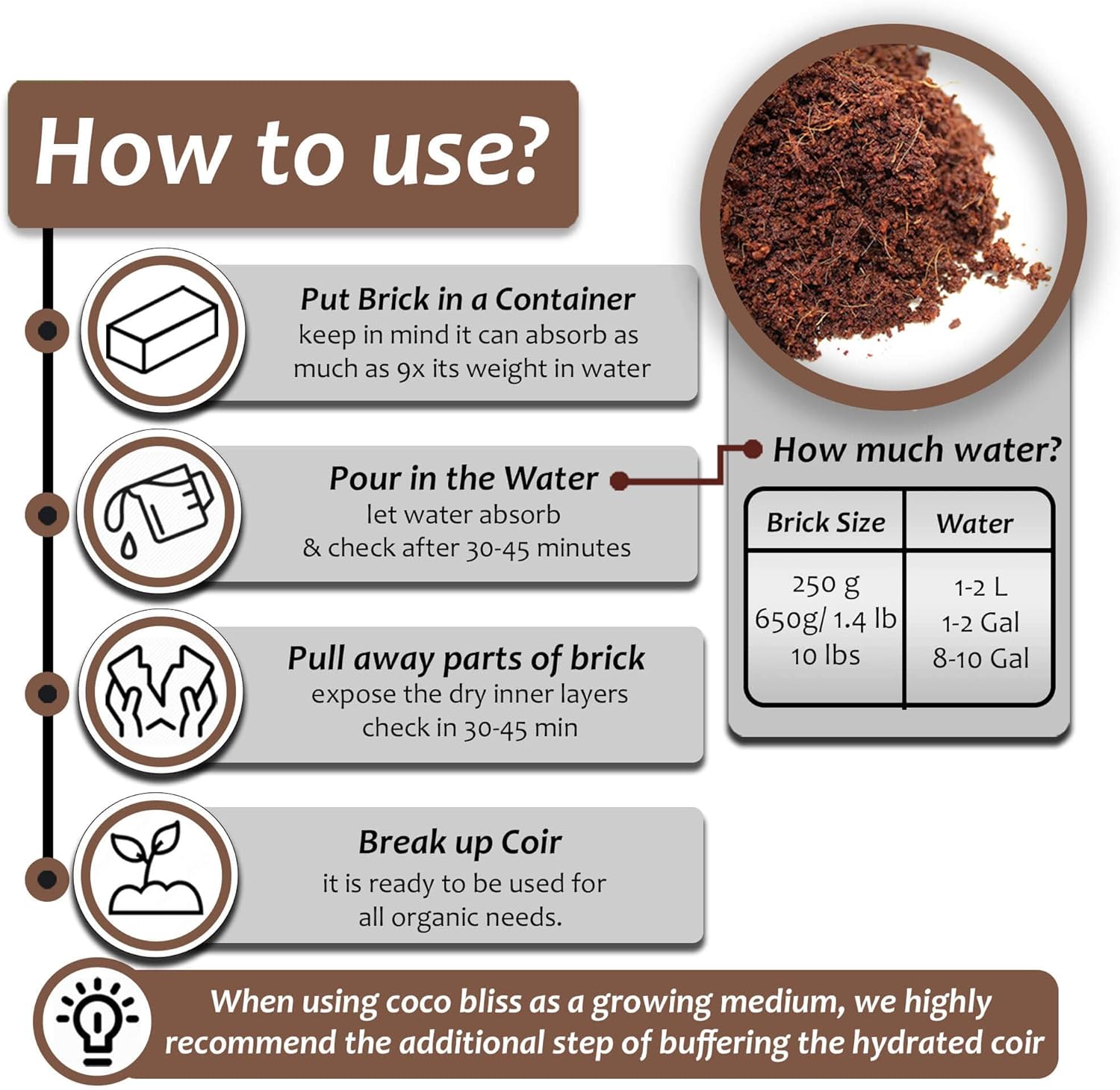 - Coco Bliss Coco Coir (10lb Block) - Coco coir is a 100% organic and renewable soil amendment that works as a growing medium for succulents, herb planters, seedlings, vegetables, flowers, indoor house plants, indoor gardens, and more. Unlike peat moss, coco coir is 100% natural and doesn’t contribute to the destruction of natural wetlands.