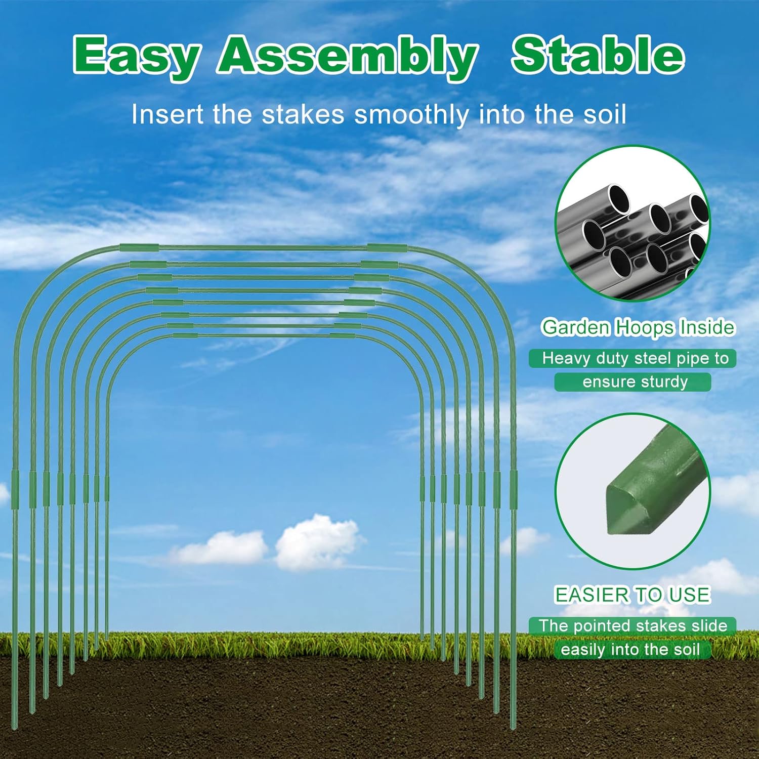 - đ±ăMULTIPLE APPLICATIONSă:Greenhouse Hoops Grow Tunnel is suitable for indoors and outdoors, fit for yard, vegetable garden and raised garden beds. Creates a favorable microclimate for your plants.