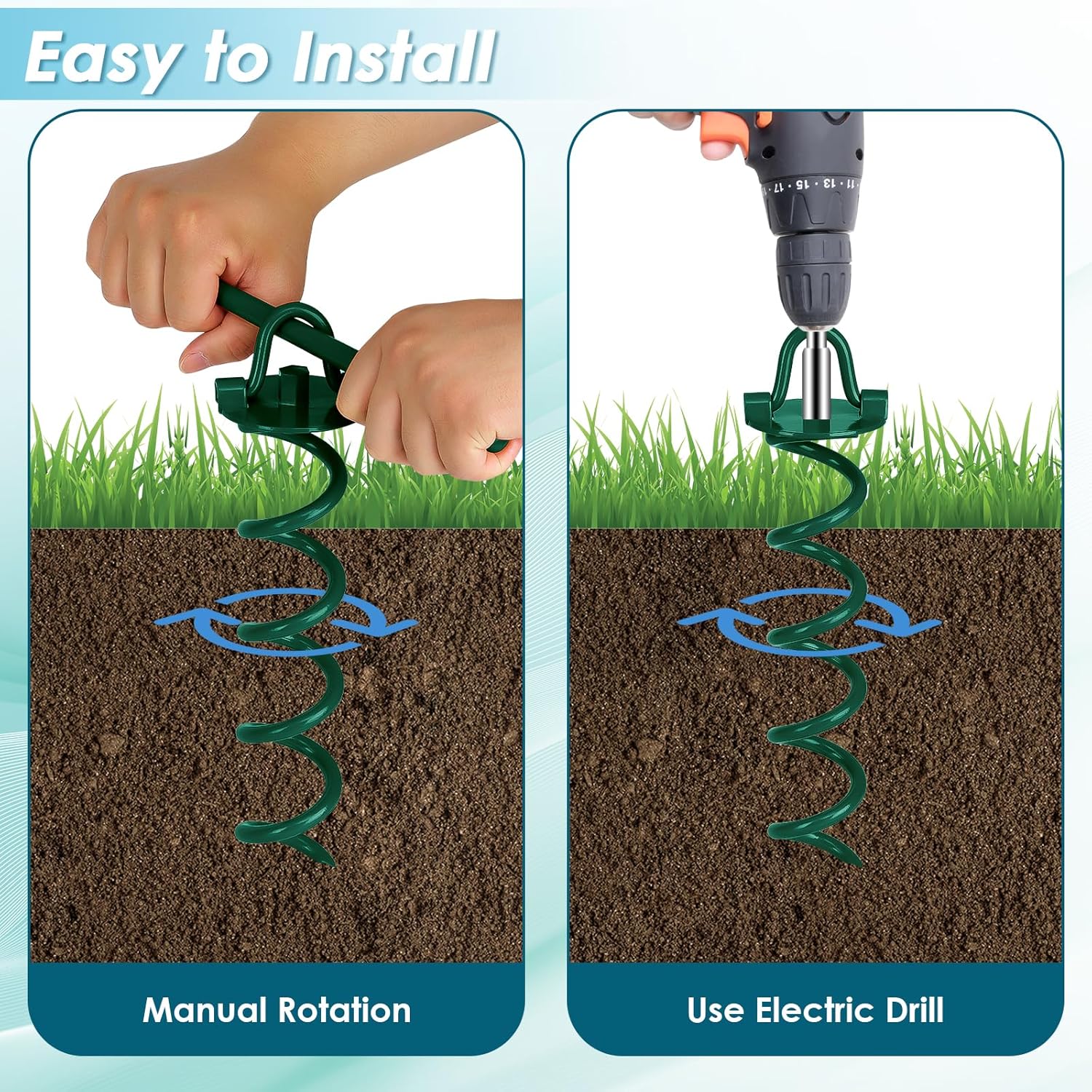 - Easy to Install & Use: Our screw in ground anchors are specially designed for versatile installation options. Simply insert the tip into the ground, put the handle through the top ring and get imbed with a few rotations. Or, you can connect the hexagon ground head to your electric drill for a more effortless installation. Please note: Drill and adapter are not included.