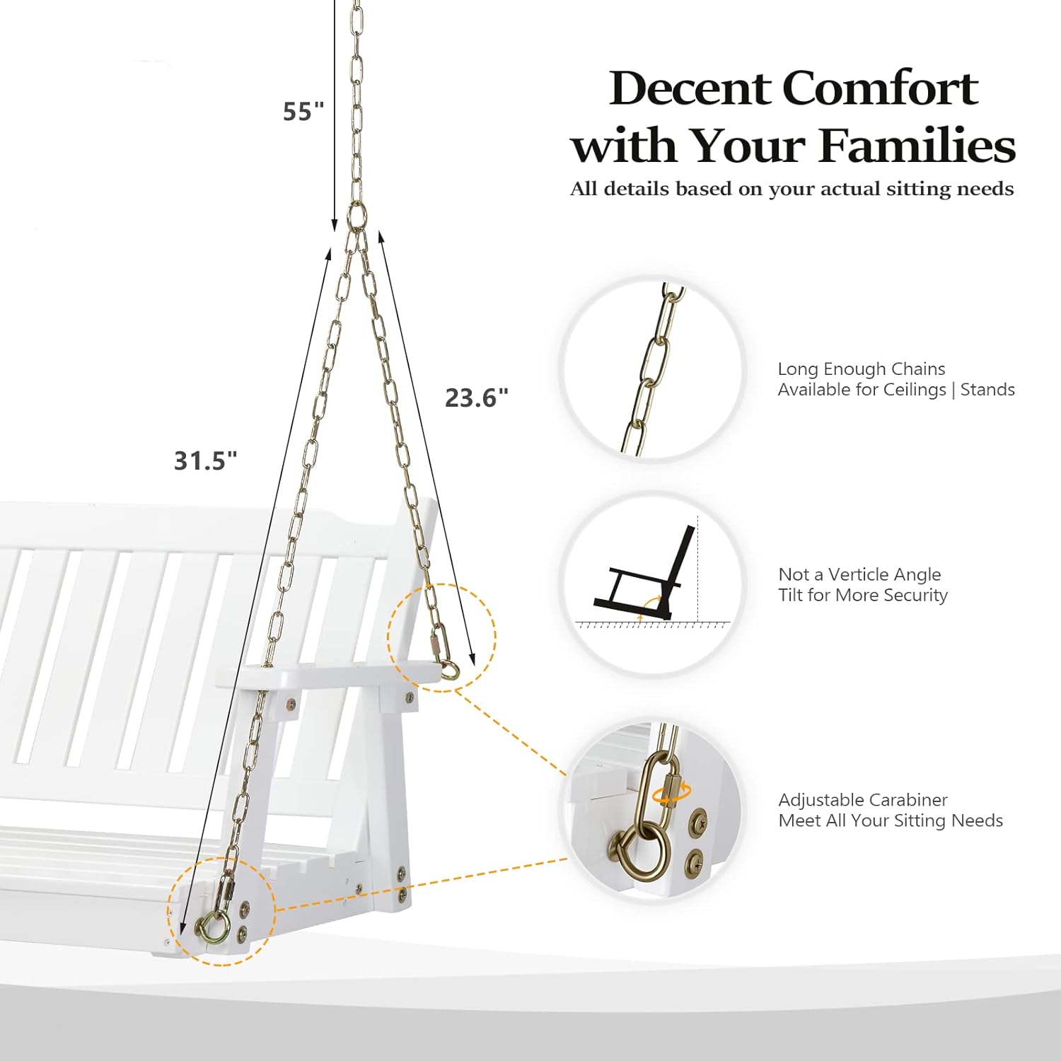 VINGLI Upgraded Heavy Duty 880 LBS 4 FT Patio Wooden Porch Swing Solid Fir Wood, Outdoor Handing Swing Bench for Garden | Yard | Balcony | Tree, White