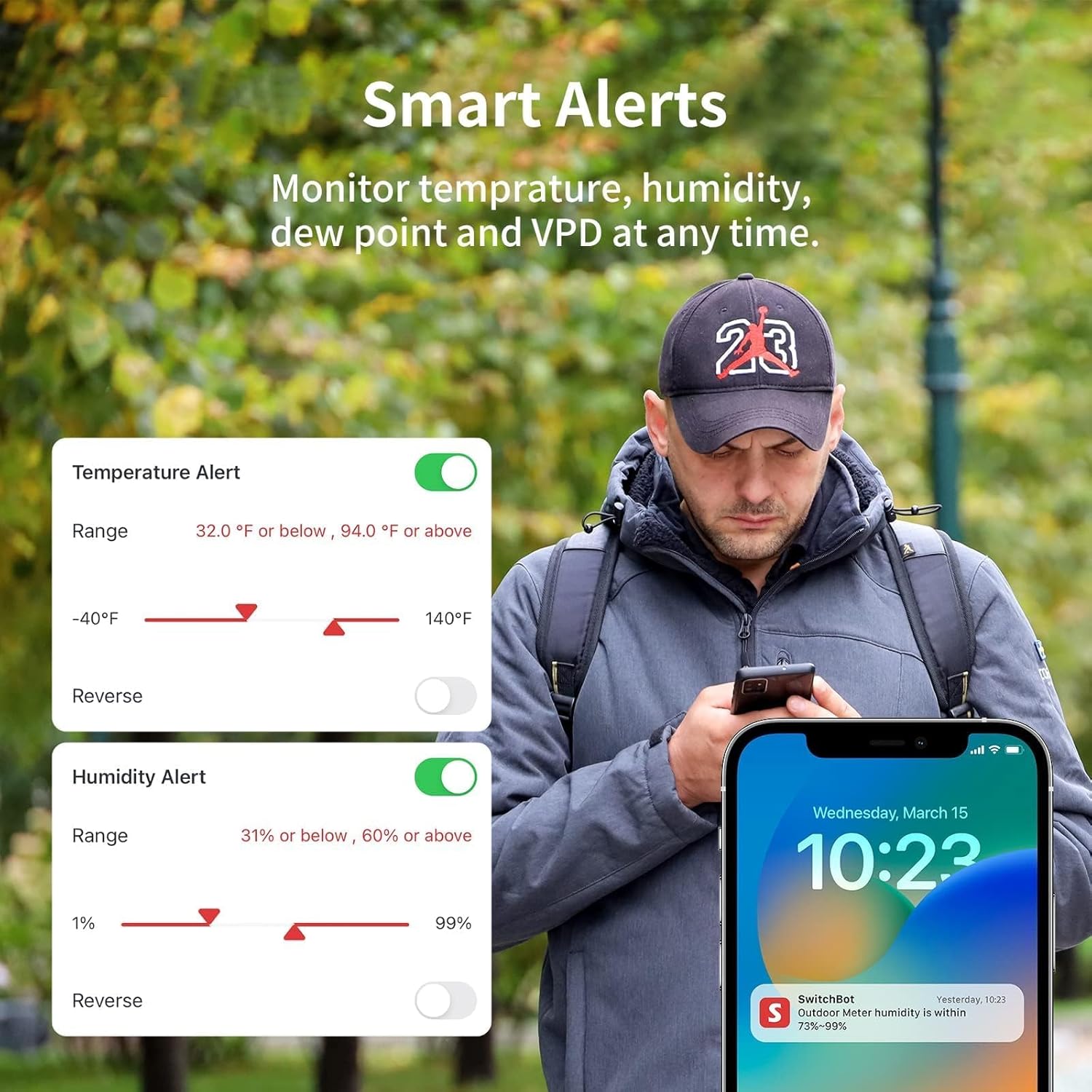SwitchBot WiFi Thermometer Hygrometer 3 Pack with Hub Mini, IP65 Indoor Outdoor Thermometer Wireless, Humidity/Temperature/Dewpoint/VPD/Absolute Humidity Sensor with Smart Alerts, Works with Alexa