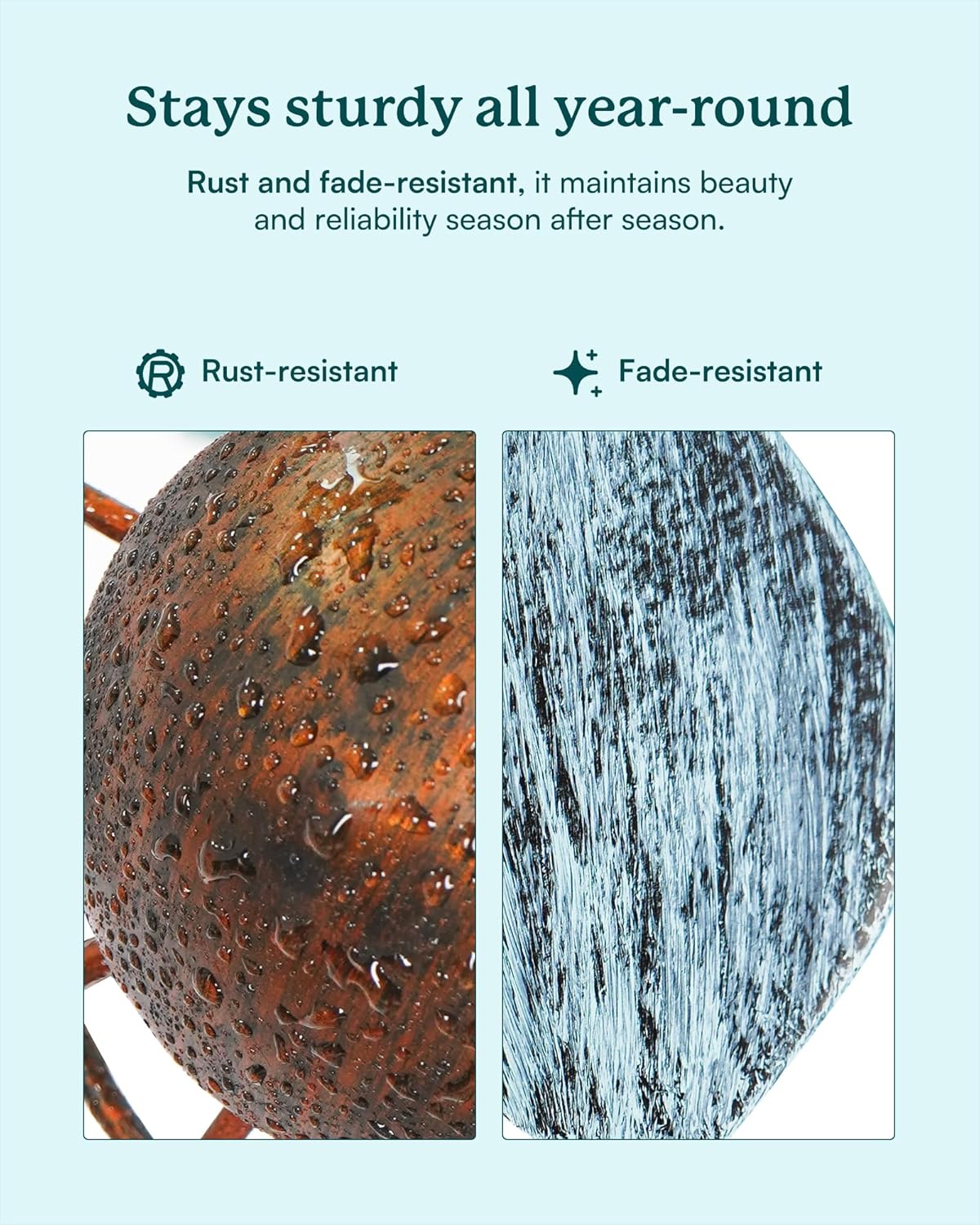- ăAll-Weather Durability & Stable DesignăCrafted with protective coating, this spinner blades resist sunlight, rain. Its bearing cover caps prevent water seeping in, ensuring smooth operation and long-lasting use. The strengthened pole and three-pronged ground stake provide excellent stability, keeping it firmly on ground even on windy days.