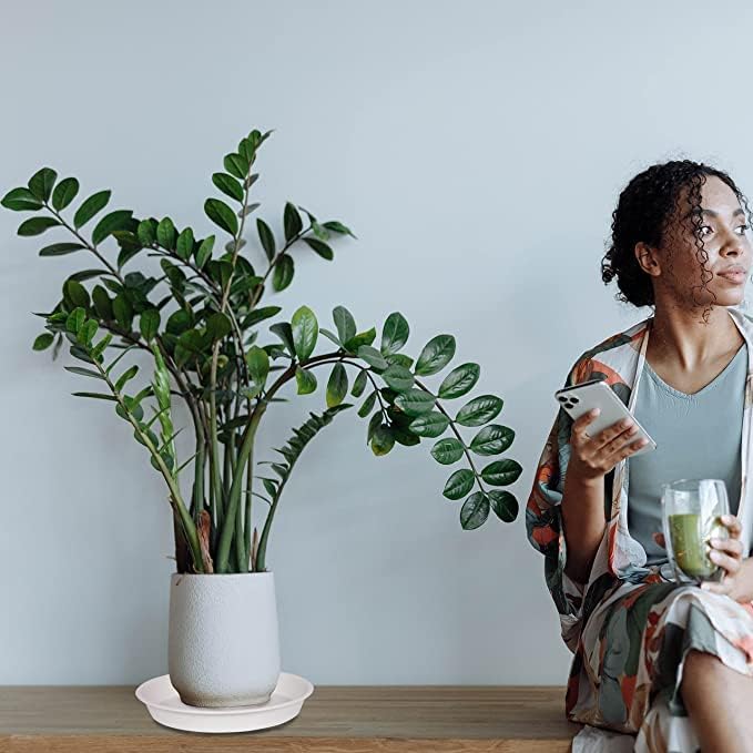 - 【SIMPLE STYLE MODERN DESIGN】Plastic pot drainage tray 10 inch are designed with matte finishing exterior in soft, round shapes, bringing out a modern minimalistic styled, plant saucers for indoors. And smooth glossy inner finish for easy cleaning. Great for replanting, and for flower plant lovers. white planters for indoor plants.