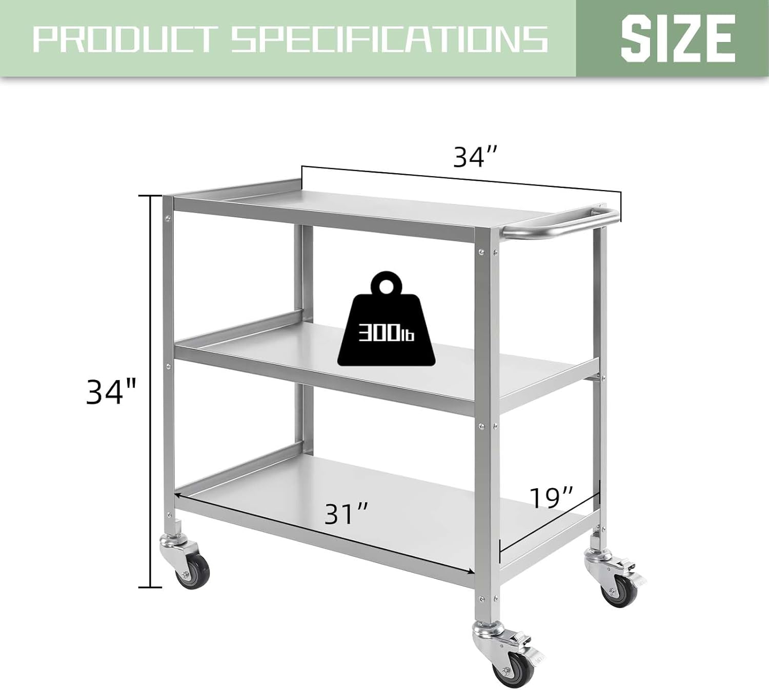 - Large Practical Storage: The 3 tier stainless steel utility cart is so convenient for storing items, with a load-bearing capacity of up to 300 lbs, suitable for kitchens, restaurants, laboratories, hospitals, offices, or any other commercial environment, and can be considered the perfect storage rack