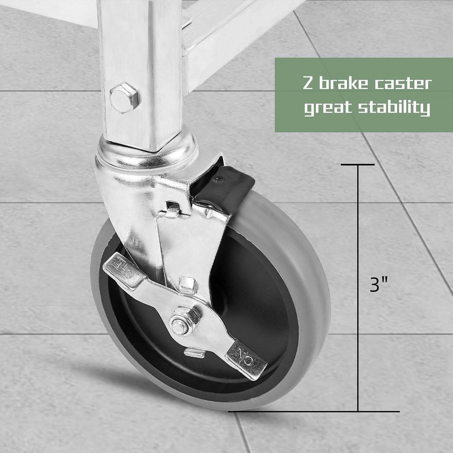 - 360° Universal Casters: The commercial grade utility cart is equipped with four 3" casters that can rotate 360° and transport items quickly and smoothly. Two casters are equipped with brakes to firmly fix the cart in place, increasing stability