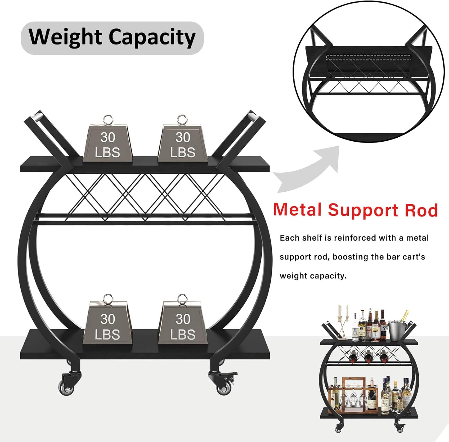 - 100% Satisfaction: With instruction and accessories included, you will never get stuck with the rolling bar cart assembly jobs. LVB has a professional customer care team that is willing to answer your questions before and after your purchase!