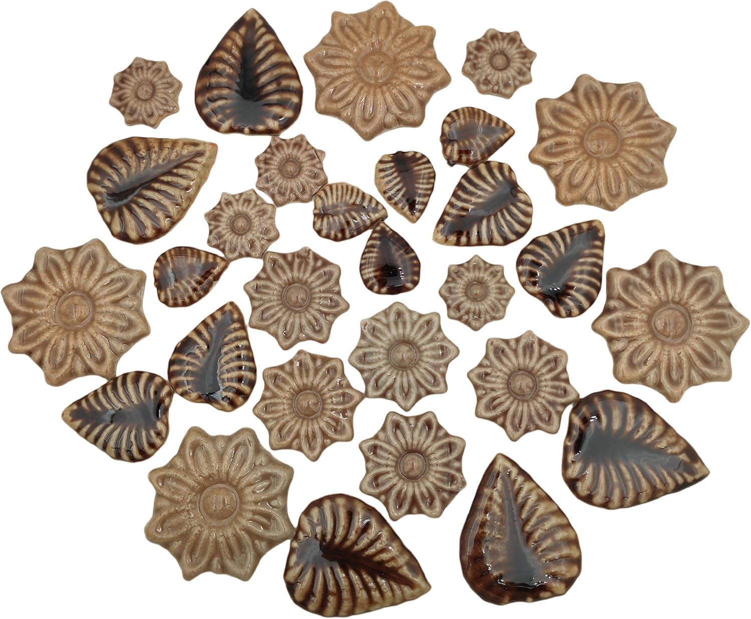 500g/1.1lb Random Color Irregular Ceramics Mosaic Tiles,DIY Making Creative Ceramic Mosaic Tiles for DIY Craft Plates Flowerpots Vases Cups Mosaic Making Supplies (Coffee Flowers + Leaves)