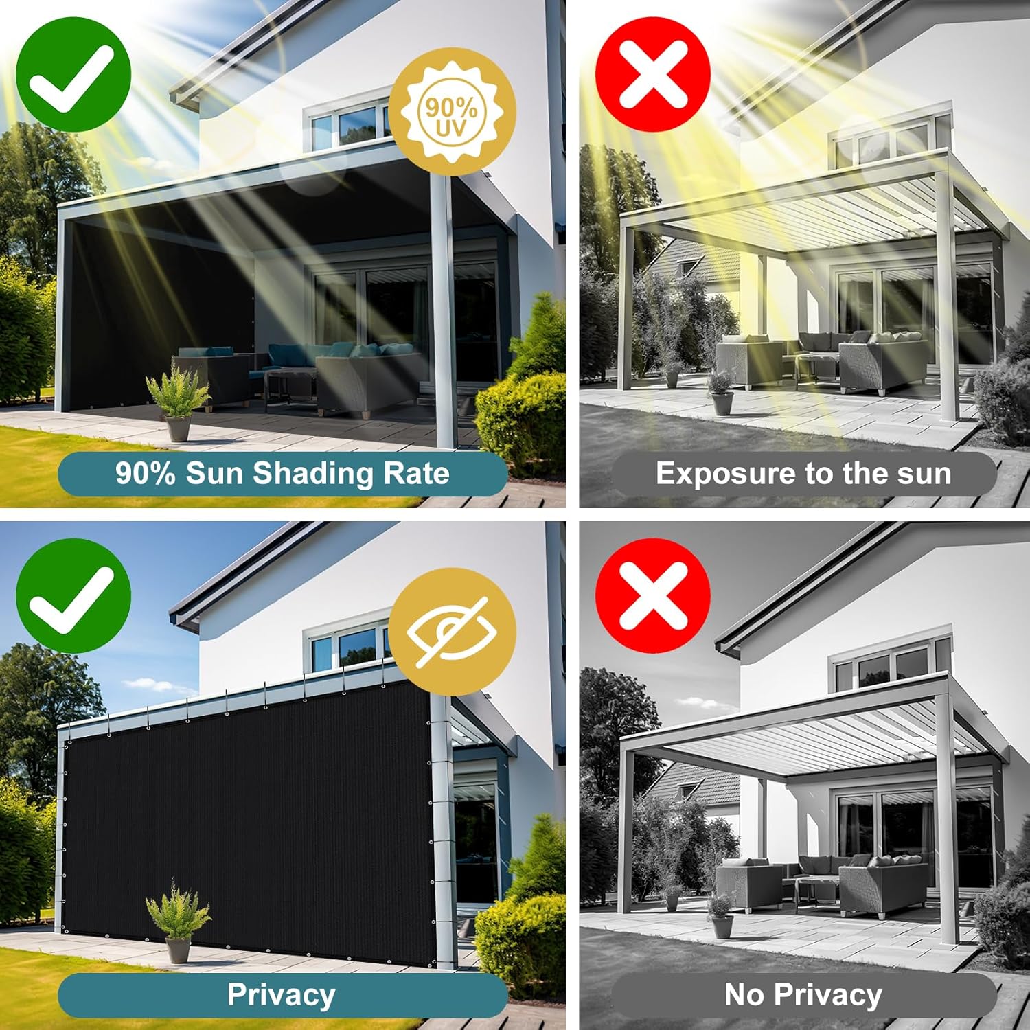 - Multiple Applications: This shade trap screen creates a comfortable outdoor seating area for you, offers a level of privacy from the outside without completely blocking your view of it. You can also use it to shield your greenhouse and plants from excessive sun exposure, or cover your pet house. Don't let the sun dictate your outdoor activities; take control with Shade&Beyond premium shade solution