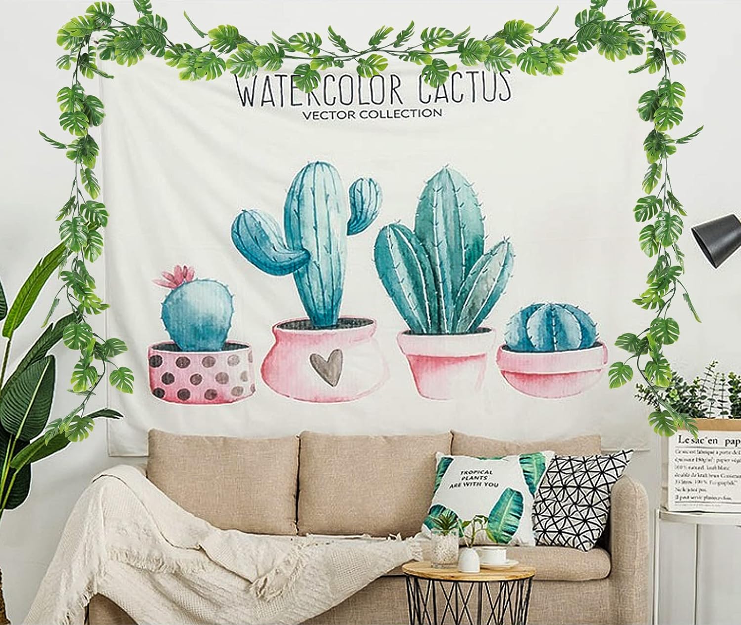 - Size & Packaging: Package includes: 4 packs of artificial hanging plants and 8 hooks. Each monstera vine is 5.9 ft/180cm long and each monstera leaf appr. 3.2"x 2.16"(LxW), about 69 fake monstera leaves per Monstera Leaf Vine. Each monstera vine is equipped with 2 hooks.NOTE:Due to packaging and transportation, the leaves maybe dropped, you can insert the leaves back after opening the rattan